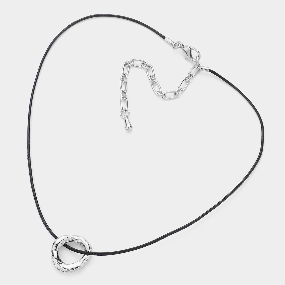Textured Metal Open Circle Pendant Choker Necklace
