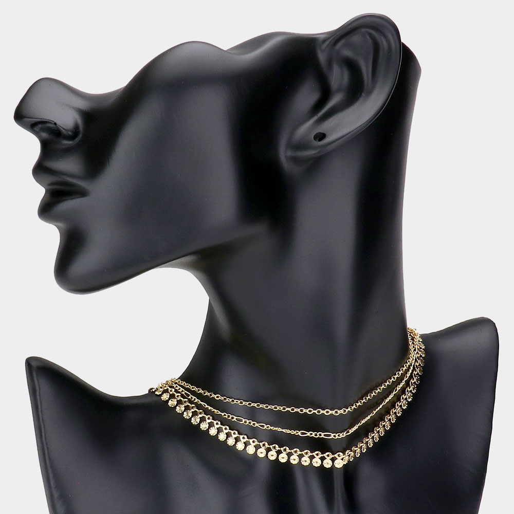 Chunky Wooden Heart Charm Station Layered Chain Necklace