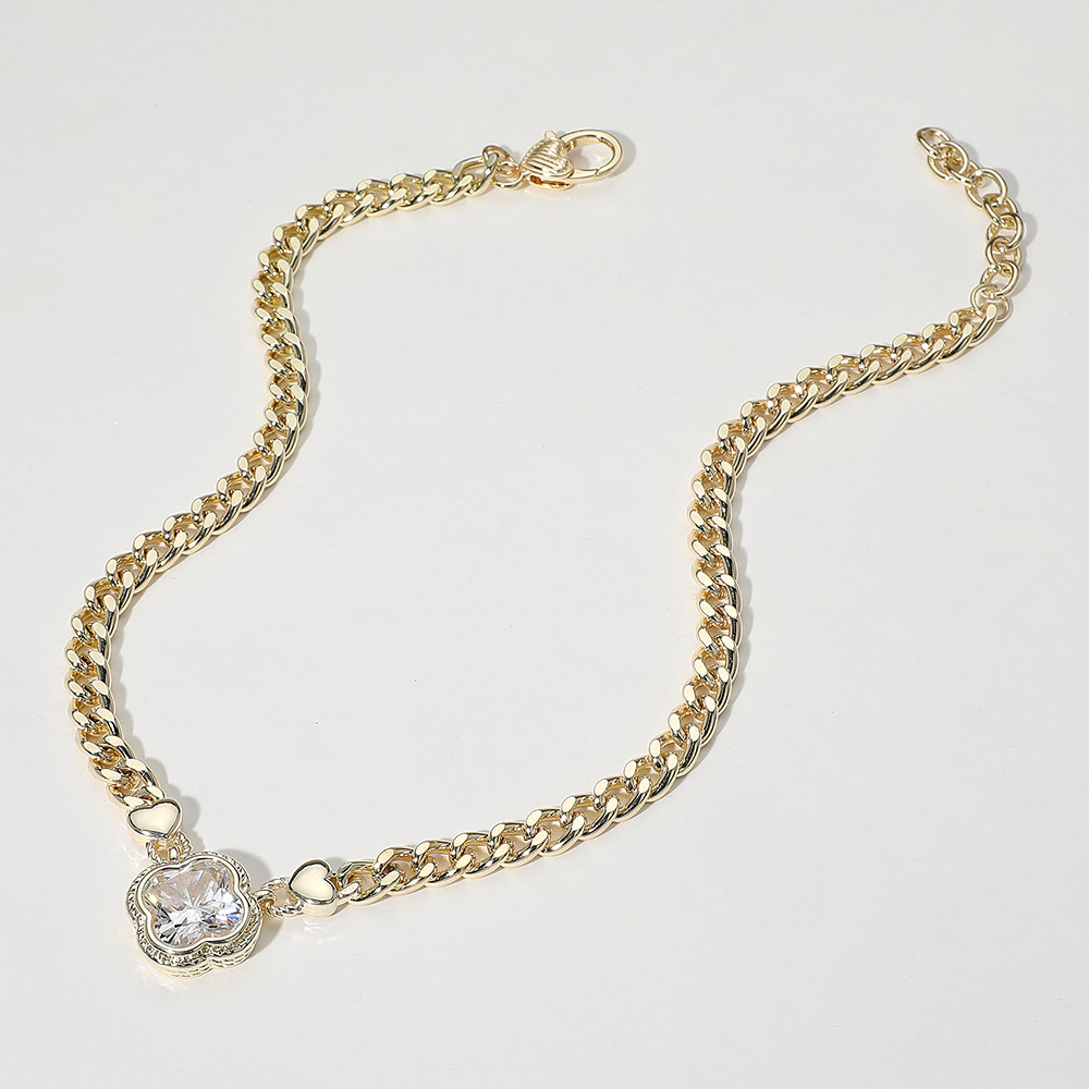 14K Gold Plated CZ Quatrefoil Pendant Pointed Chain Necklace