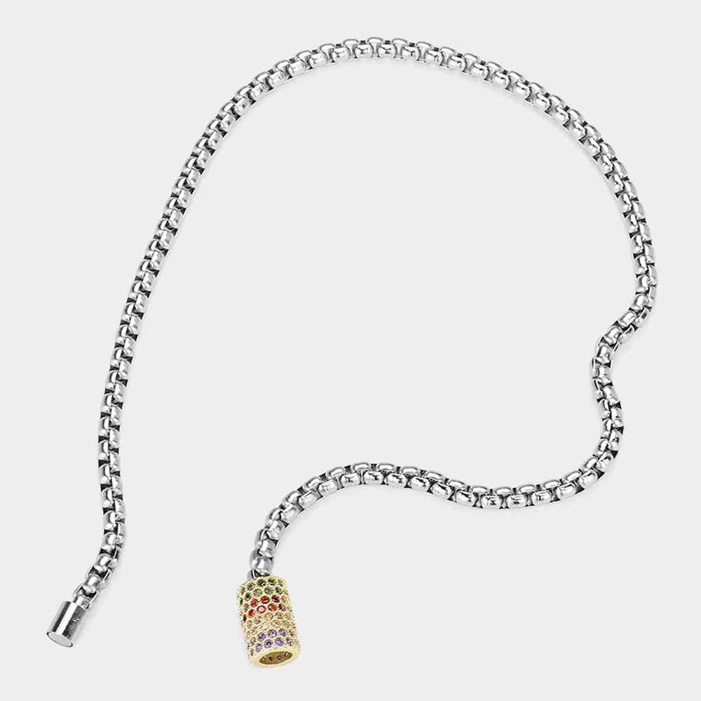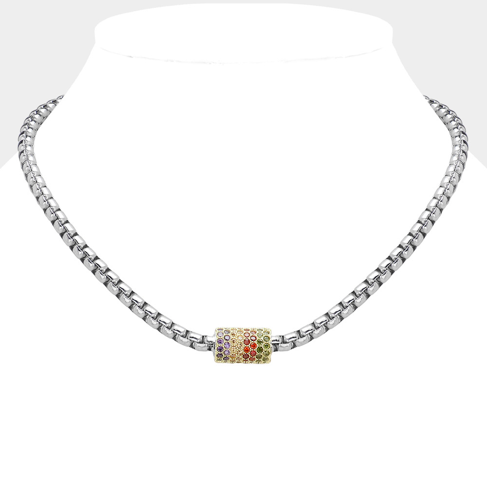 14K Gold Plated CZ Stone Paved Cylinder Pointed Magnetic Necklace