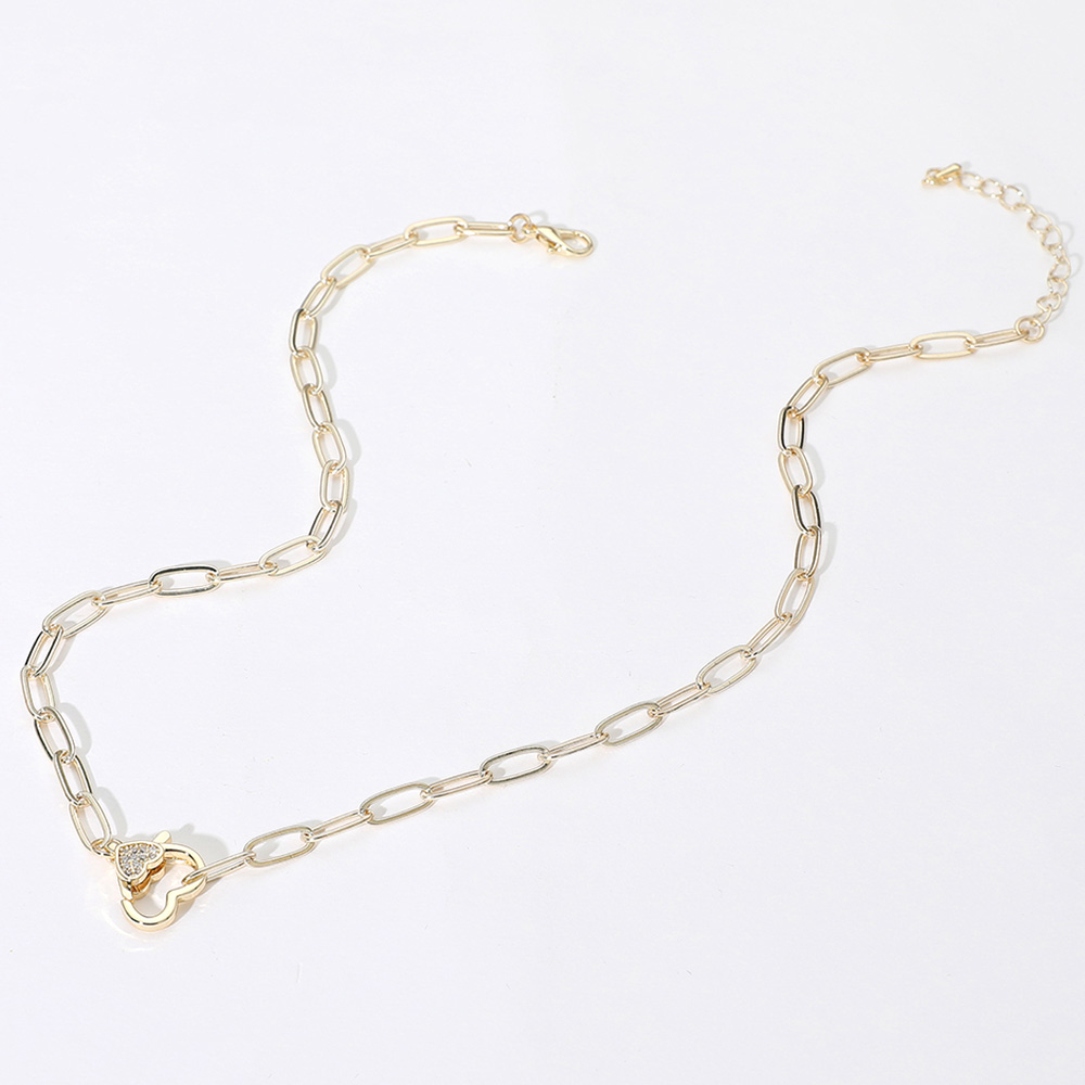 Details • Necklace Size : 16.5" + 2.5" L • Decor Size : 0.7" L • A delicate chain necklace featuring a heart-shaped charm adorned with shimmering details. Perfect for everyday wear or gifting, this elegant piece adds a touch of romance and timeless beauty to any jewelry collection. • Gold Dipped • CZ Cubic Zirconia