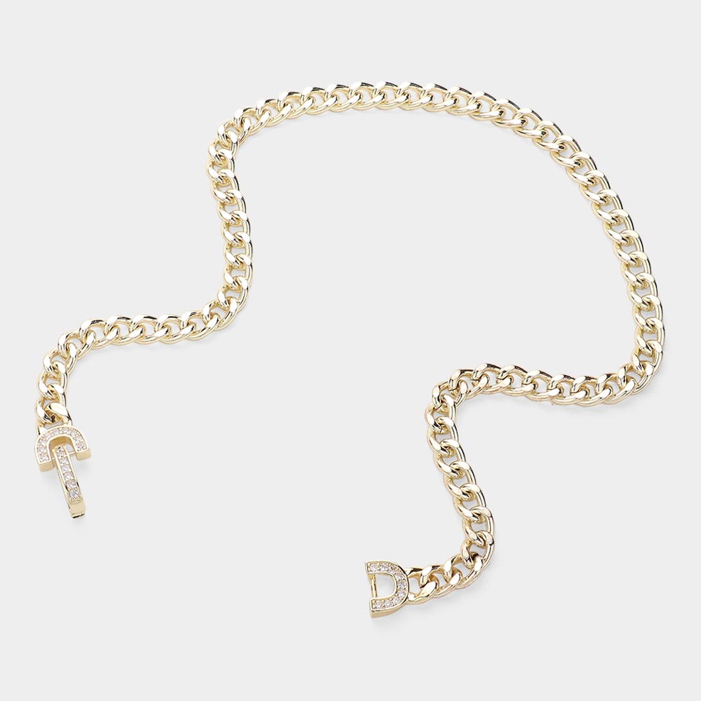 -O- Gold Dipped Metal Initial Monogram Rhinestone Oval Link Pendant Necklace