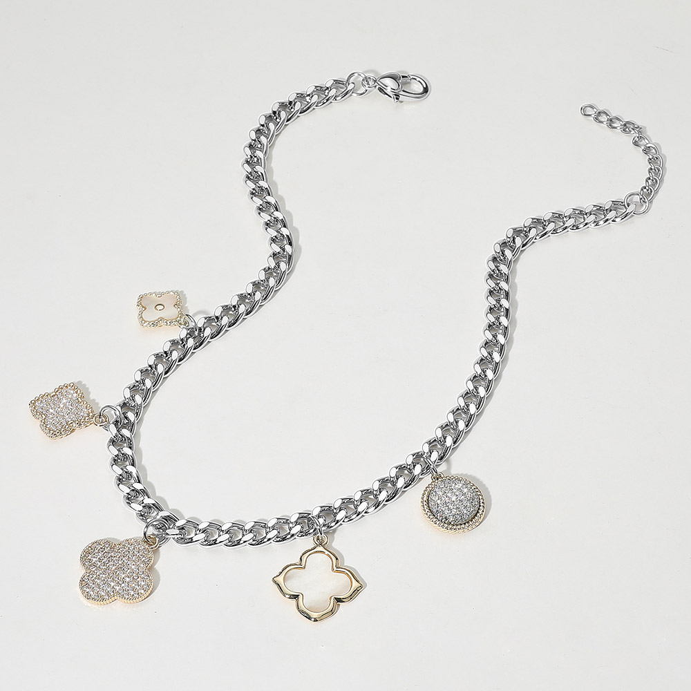 White Gold Dipped Quatrefoil Charm Link Bracelet