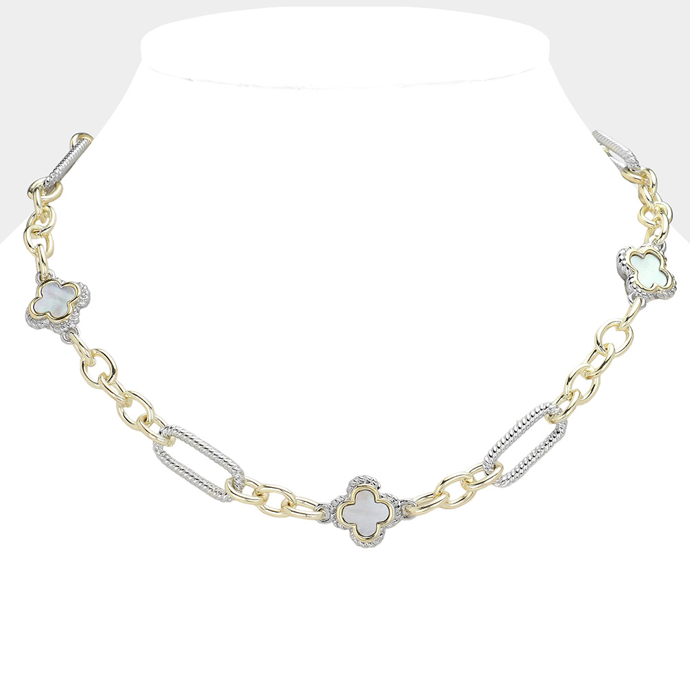 14K Gold Plated Mother Of Pearl Quatrefoil Pointed Chain Necklace