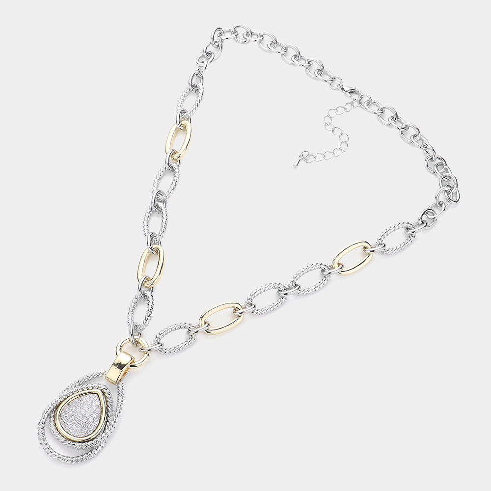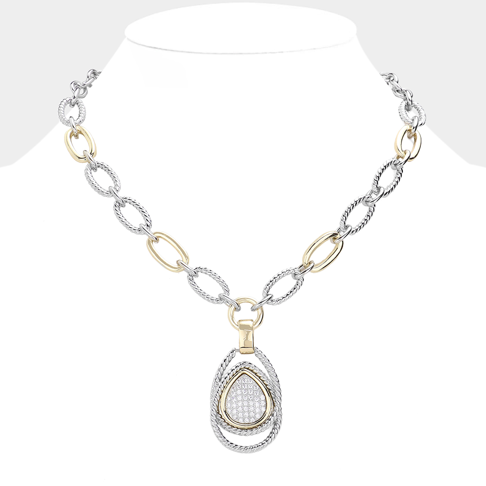 14K Gold Plated Two Tone CZ Stone Paved Abstract Pendant Chunky Chain Necklace