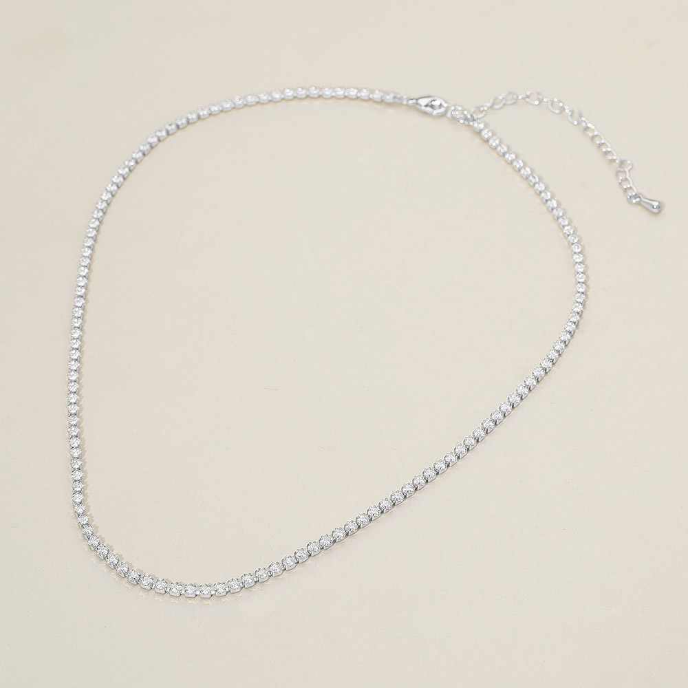 • Elegant tennis necklace featuring a sleek line of sparkling crystals for a refined, timeless look. Perfect for layering or wearing solo to add subtle sophistication to any outfit. A versatile accessory that enhances both everyday and special occasion styles with effortless glamour.