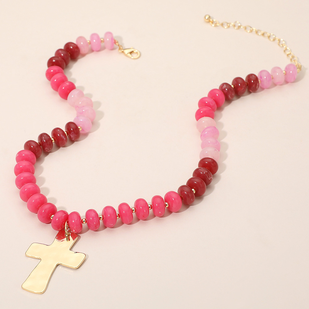 18K Gold Dipped Hammered Cross Plate Pendant Chunky Resin Disc Beaded Necklace 18K Gold Dipped Hammered Cross Plate Pendant Chunky Resin Disc Beaded Necklace