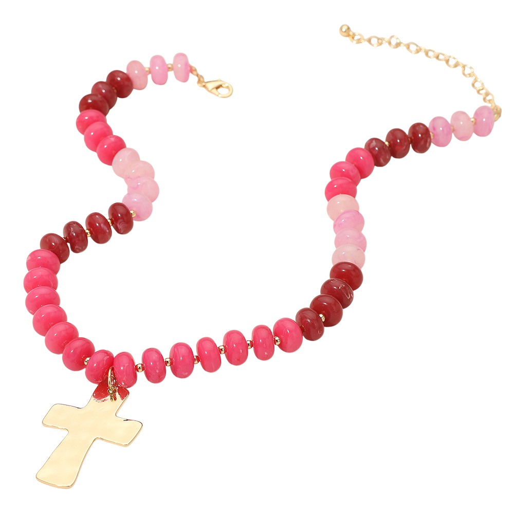 • Express timeless style with this beaded necklace featuring smooth multitone beads and a bold cross pendant. Ideal for layering or wearing as a statement piece, it’s perfect for both casual and special occasions, adding meaning and elegance to any look.