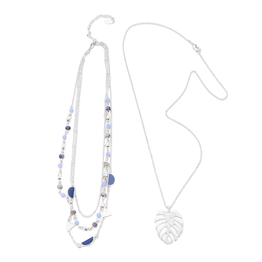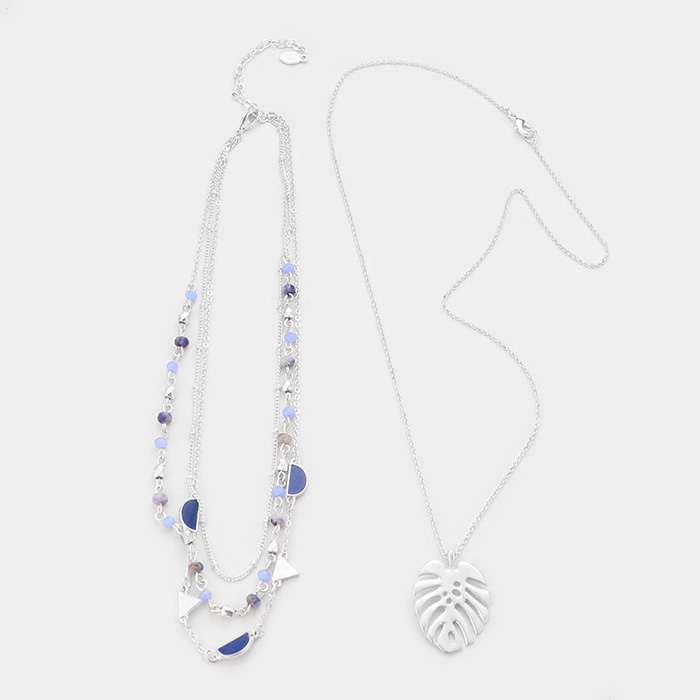 2PCS - Metal Tropical Leaf Pendant Detachable Necklace