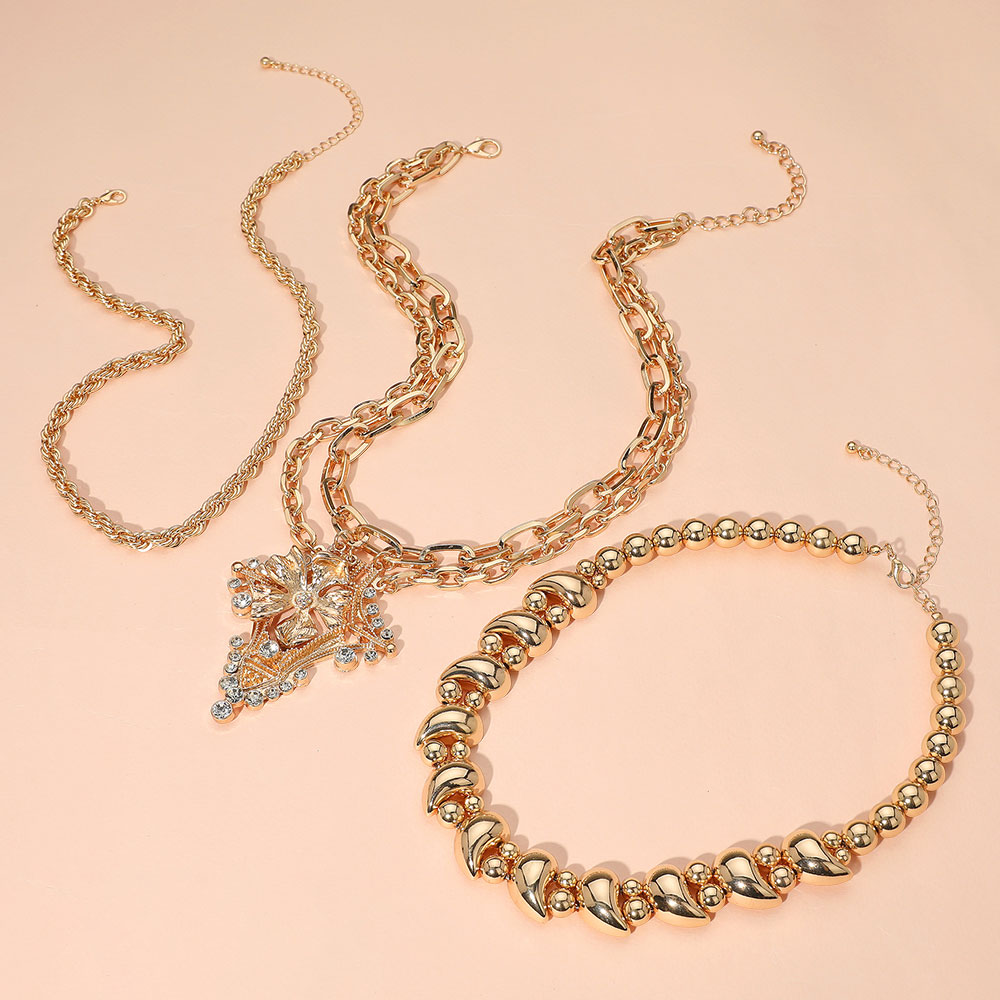 Details • Necklace 1 Size : 16.5" + 3.25" L, 0.8" L • Necklace 2 Size : 20" + 3.5" L, 2.75" L • Necklace 3 Size : 17.5" + 3.25" L, 0.25" L • Earrings Size : 0.2" L • Complete your look with this multi-chain necklace set featuring a bold pendant and mixed styles. Perfect for layering, this set adds a striking finish to any outfit, from daywear to evening glam. • Lead and Nickel Compliant