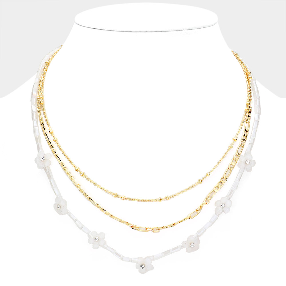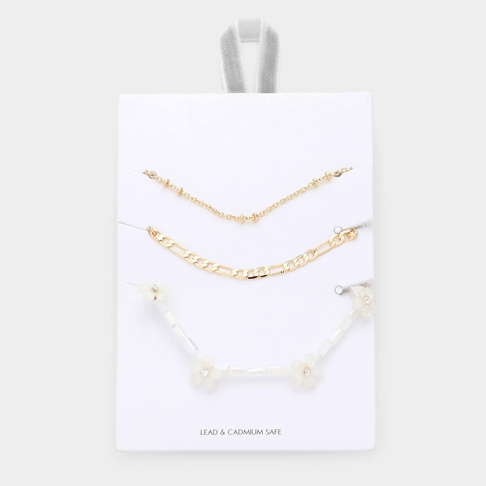 3PCS - Metal Chain Flower Accented Beaded Necklaces