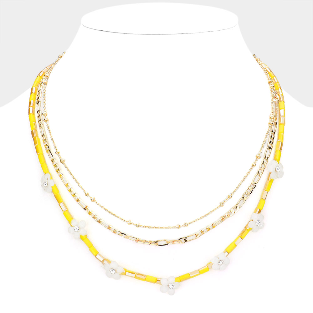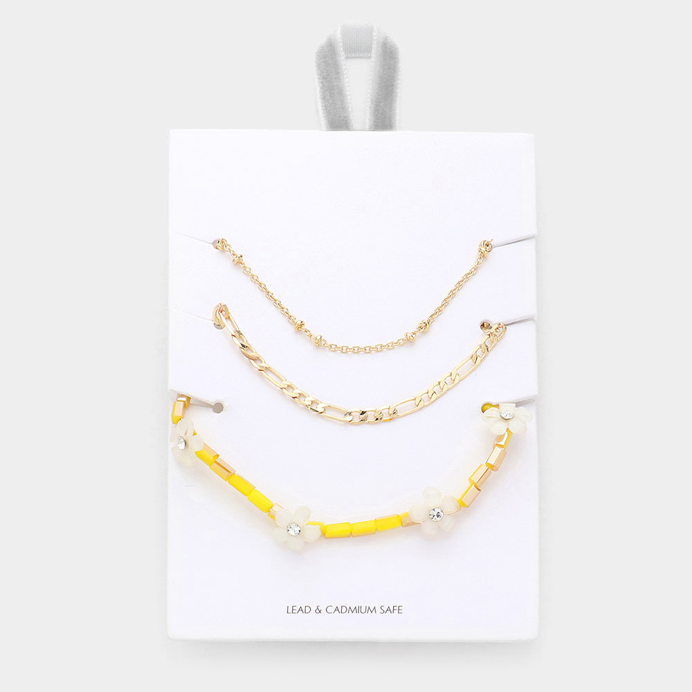 3PCS - Metal Chain Flower Accented Beaded Necklaces