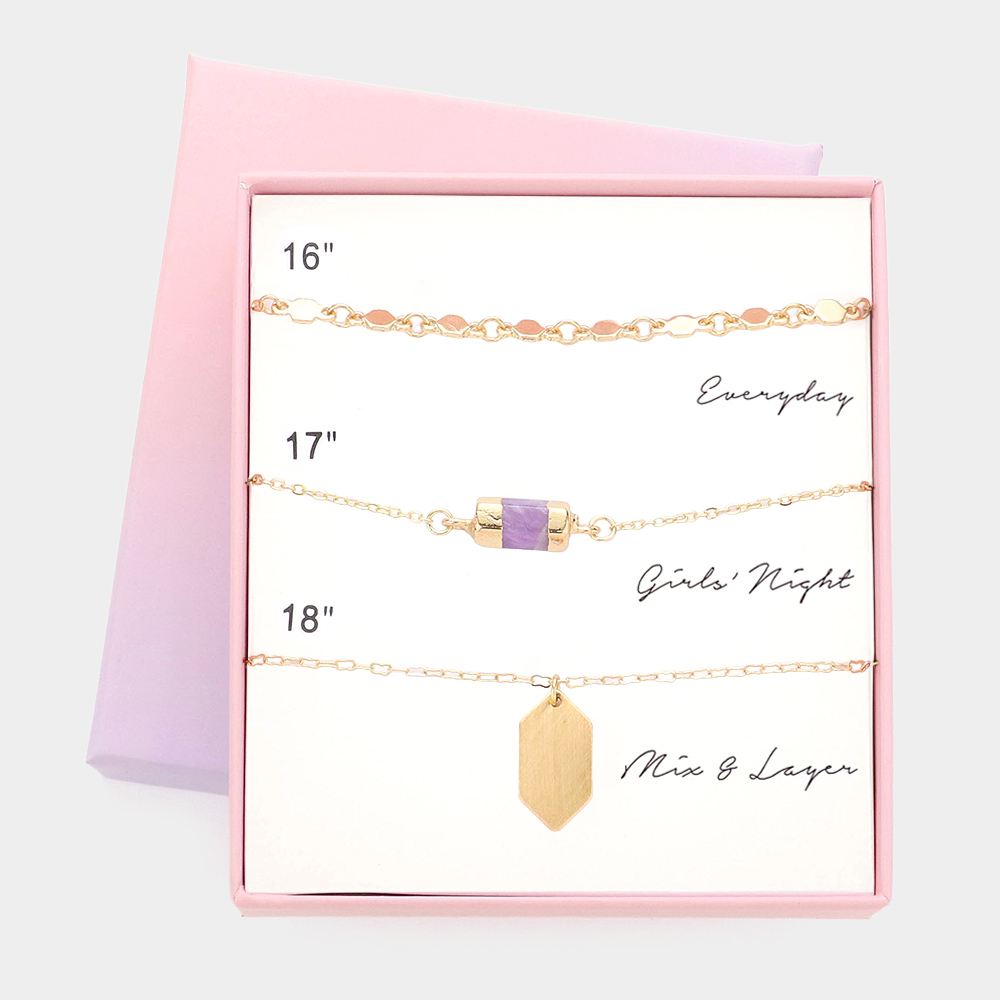 3PCS - Metal Hexagon Link Natural Stone Necklaces