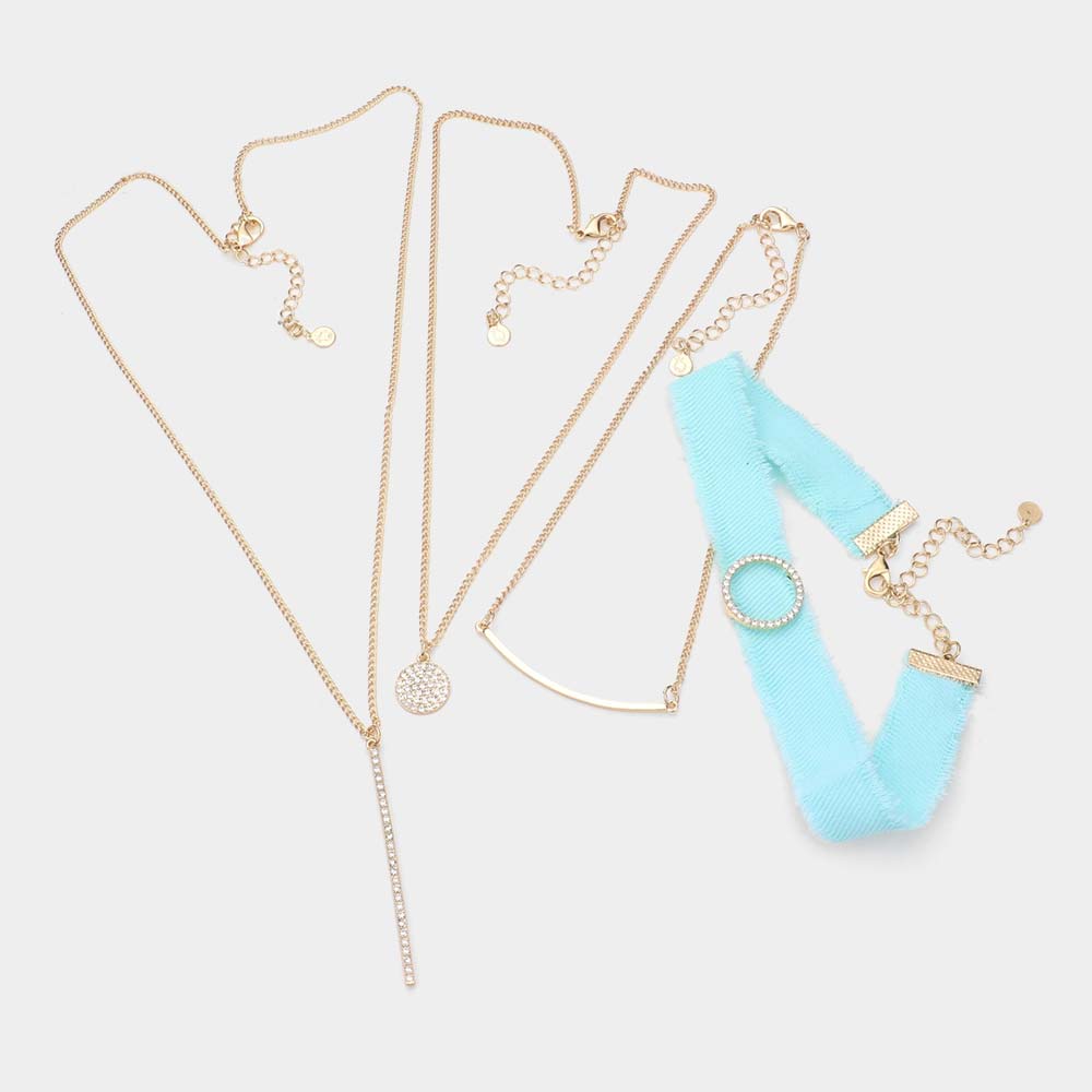 4PCS - Fabric Choker Geometric Pendant Necklaces