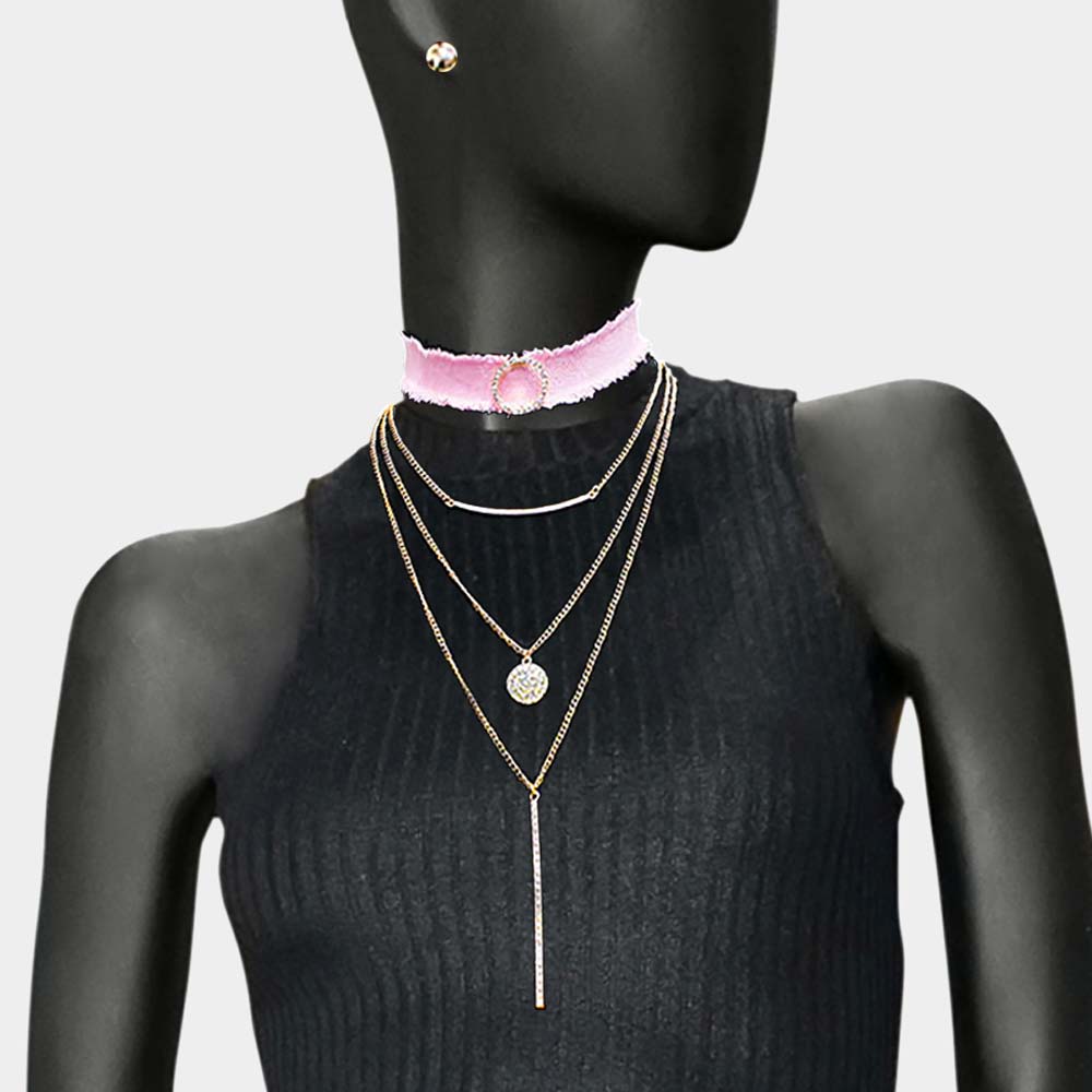 4PCS - Fabric Choker Geometric Pendant Necklaces