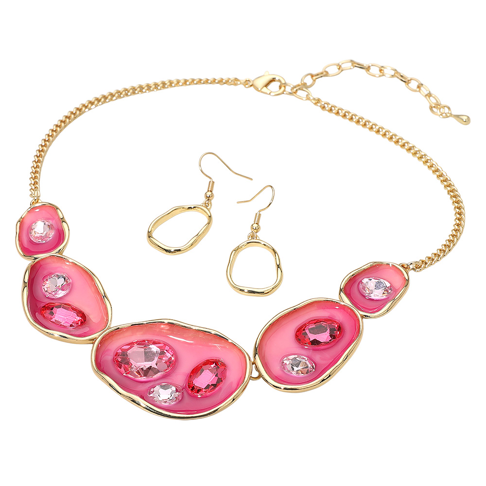 • Contemporary jewelry set featuring a bold necklace and matching earrings with artistic gem accents framed in fluid shapes. Perfect for parties, formal events, or chic everyday wear. A statement-making accessory that combines modern style with elegant sophistication.