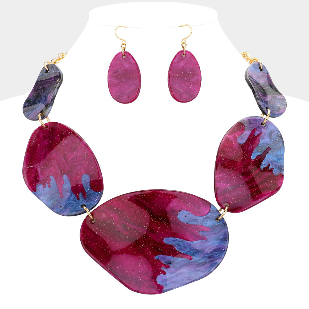 Oversized Patterned Celluloid Acetate Plate Accent Doorknocker Earrings