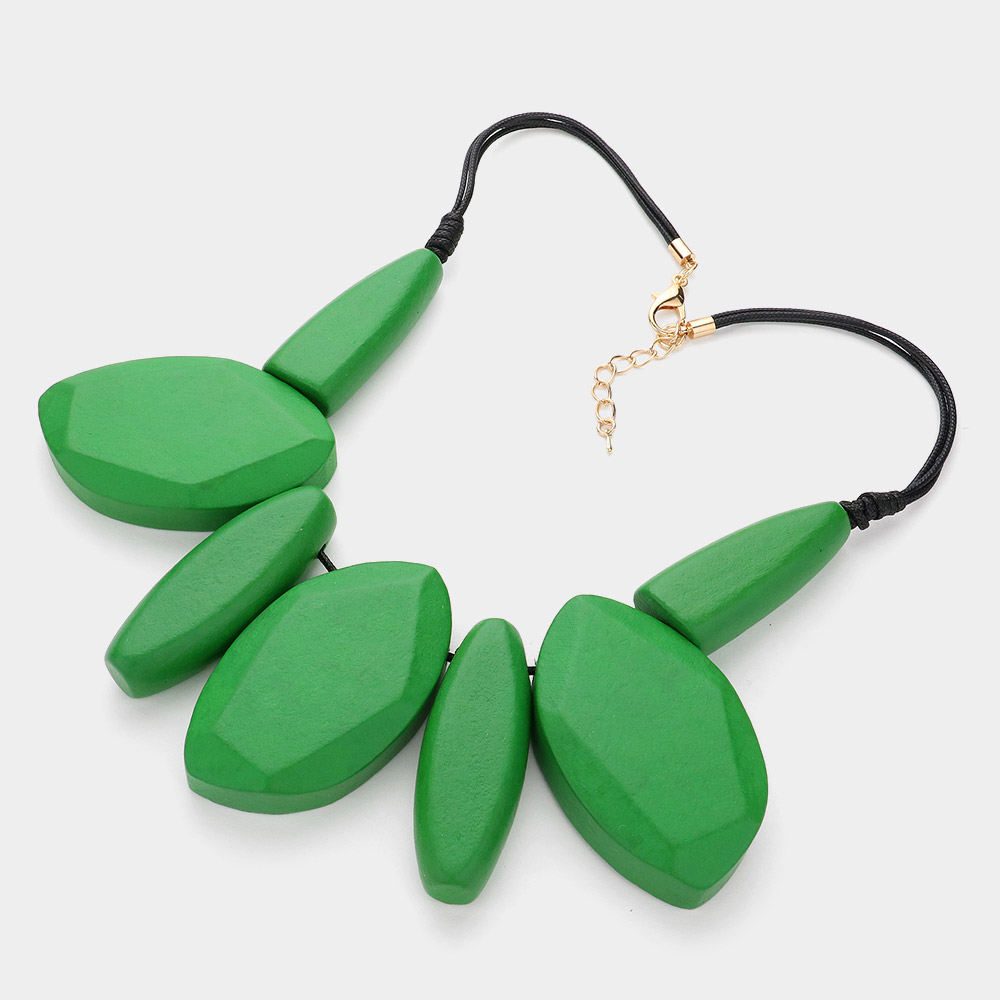 2PCS - Natural Stone Pendant Pointed Teardrop Stone Link Multi Chain Layered Statement Necklace