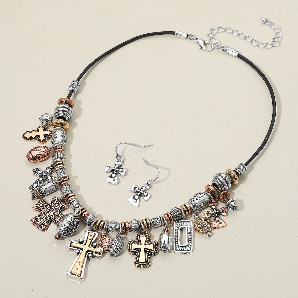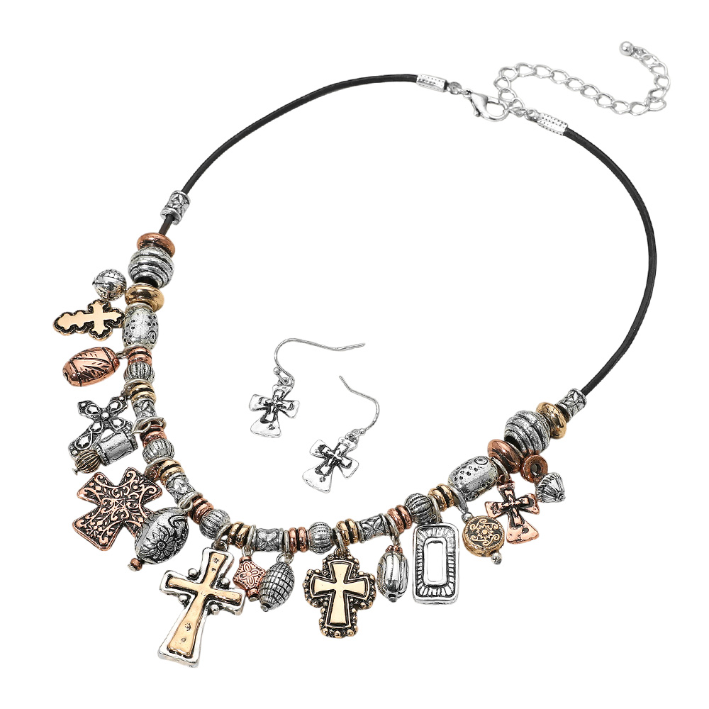 Stone Paved Cross Oval Locket Heart Coin Medallion Charm Station Paperclip Chain Bracelet