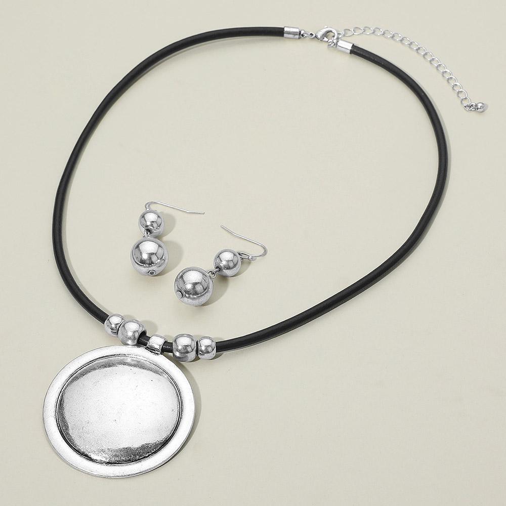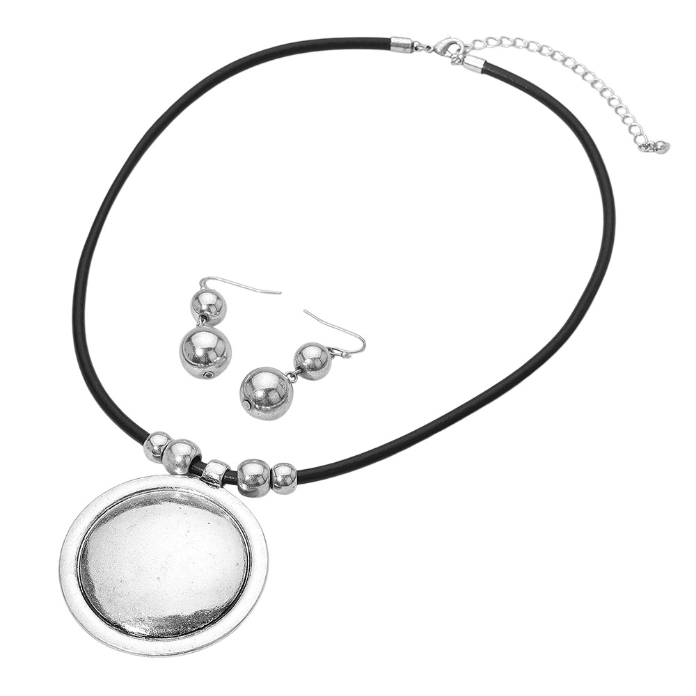 Details • Necklace Size : 18.5" + 2" L • Decor Size : 2.25" L • Earrings Size : 1.75" L • This modern jewelry set includes a bold round pendant necklace with matching beaded drop earrings. Sleek and minimal, it’s perfect for dressing up casual outfits or adding a stylish accent to evening wear. A versatile choice for personal styling or thoughtful gifting. • Lead and Nickel Compliant