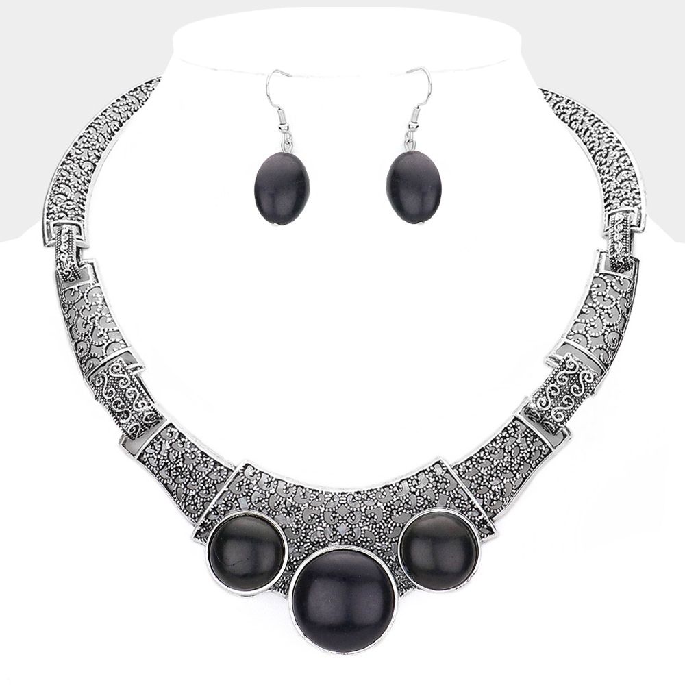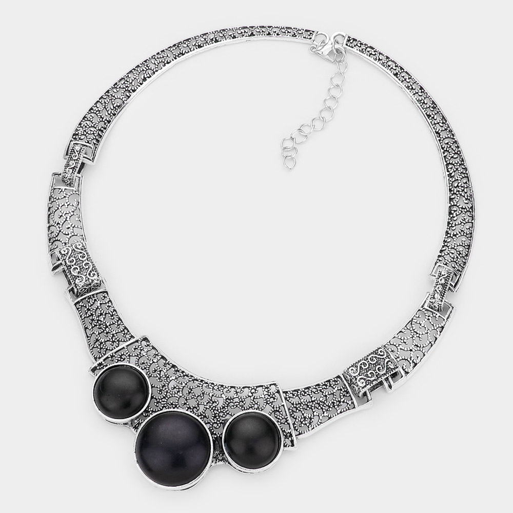 Antique Metal Natural Stone Accented Filigree Collar Necklace