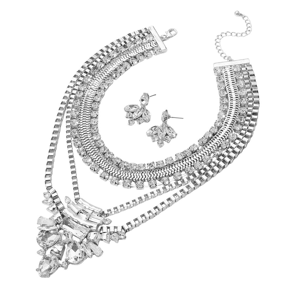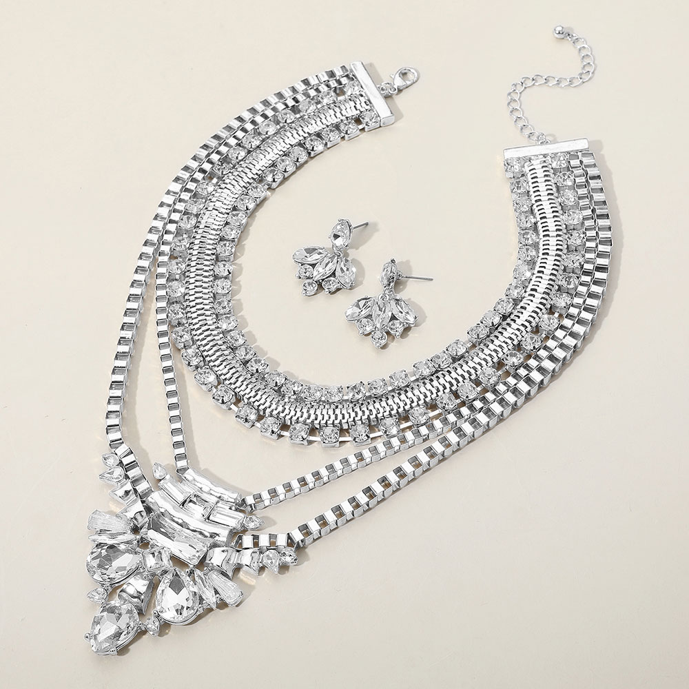 3PCS - Rhinestone Embellished Necklace Jewelry Set