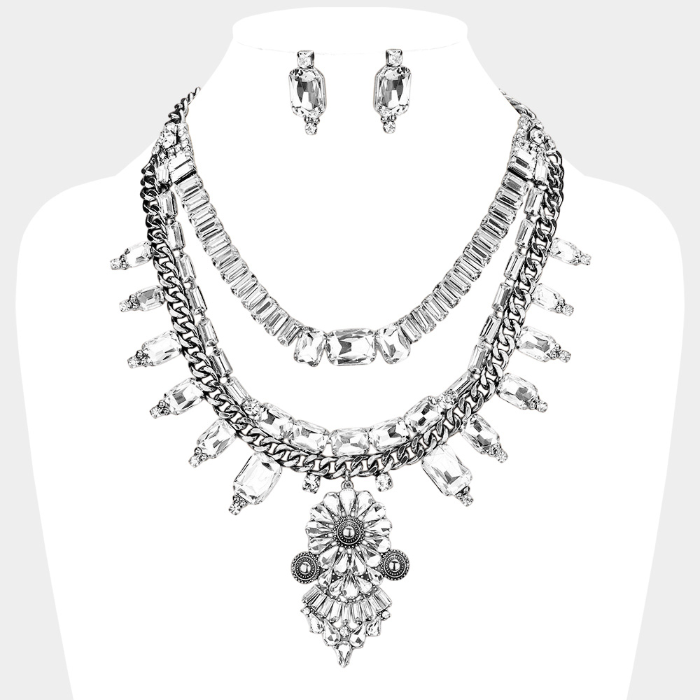Oval Faux Leather Metal Arrow Pendant Necklace