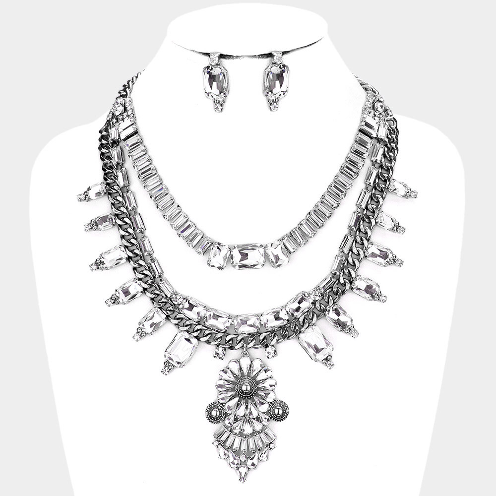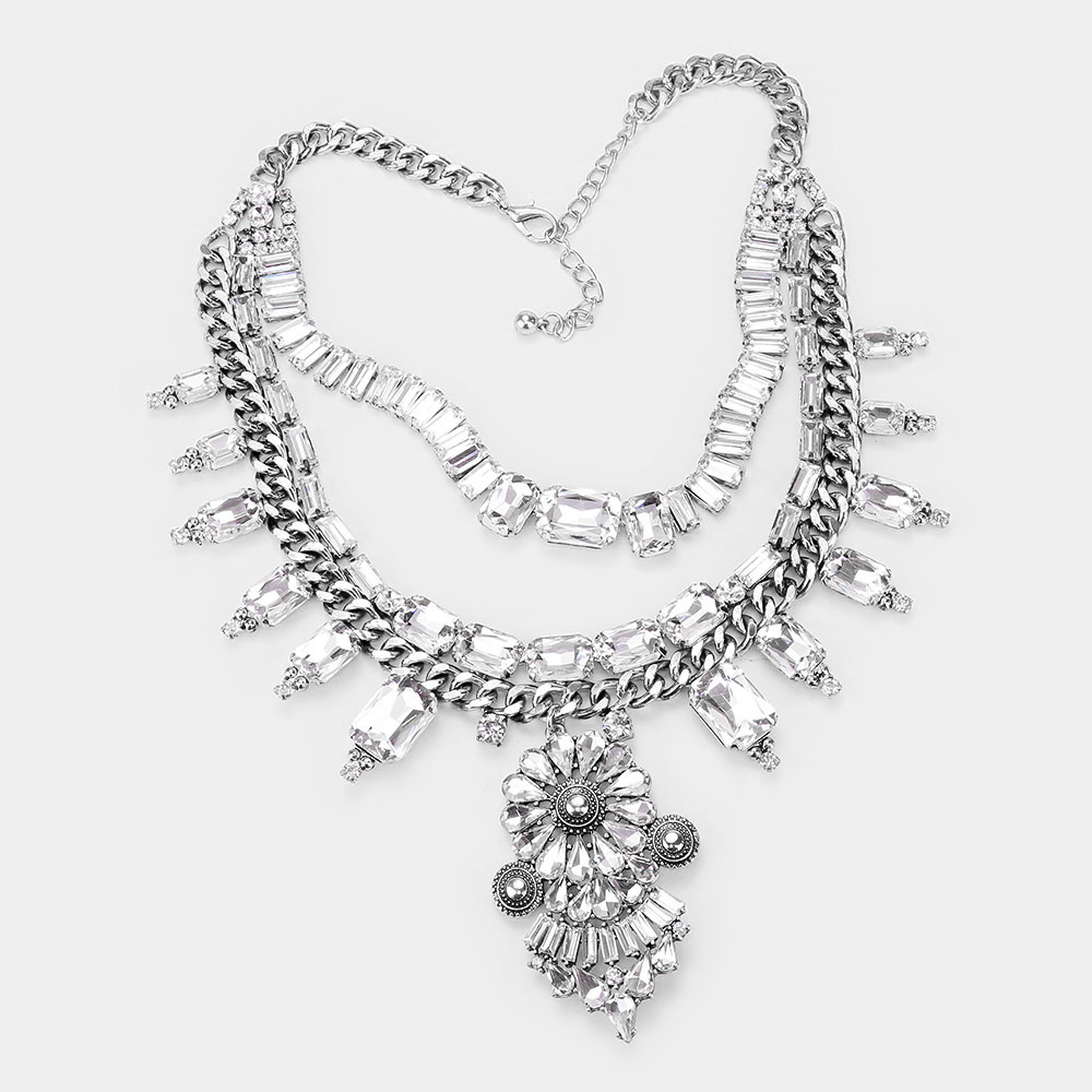 Pearl Centered Bling Studded Flower Pointed Bolo Tie Necklace