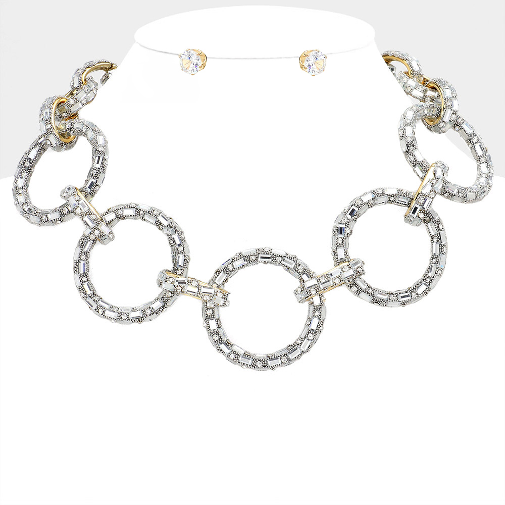 Baguette Stone Embellished Bling O Ring Link Necklace