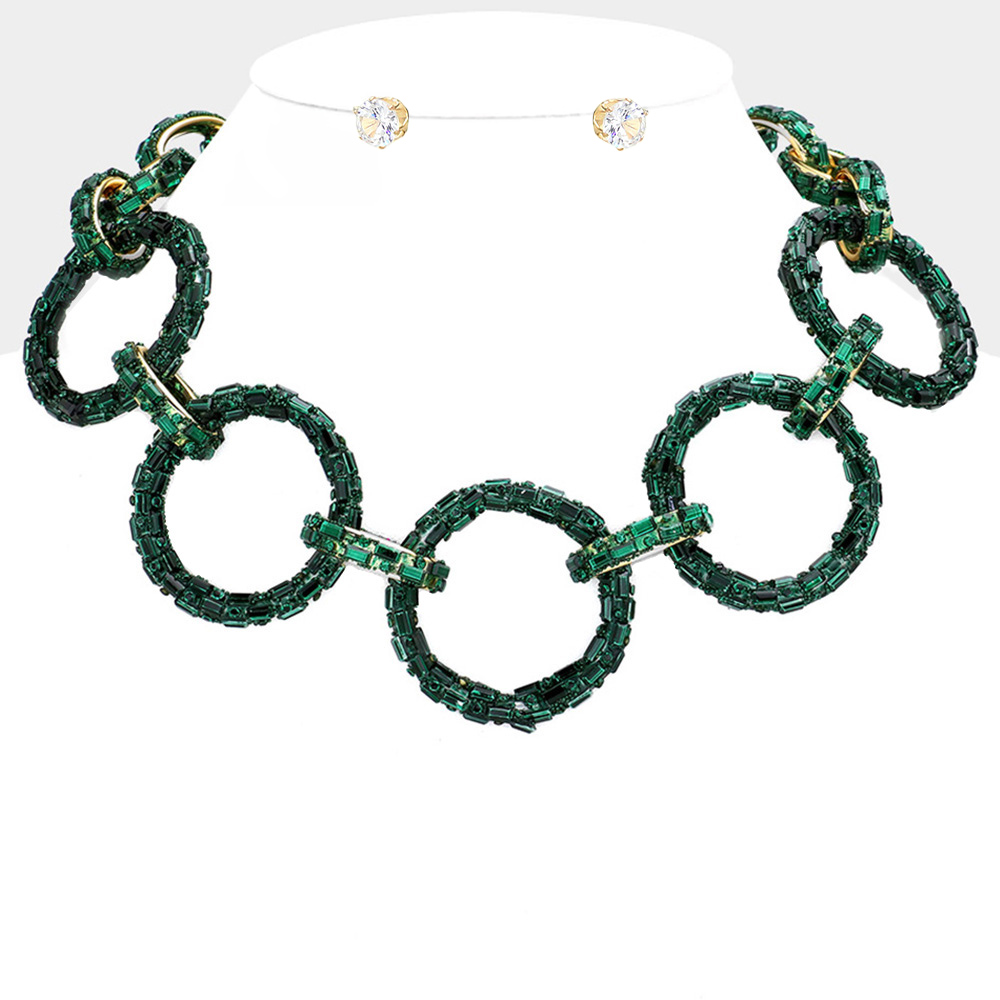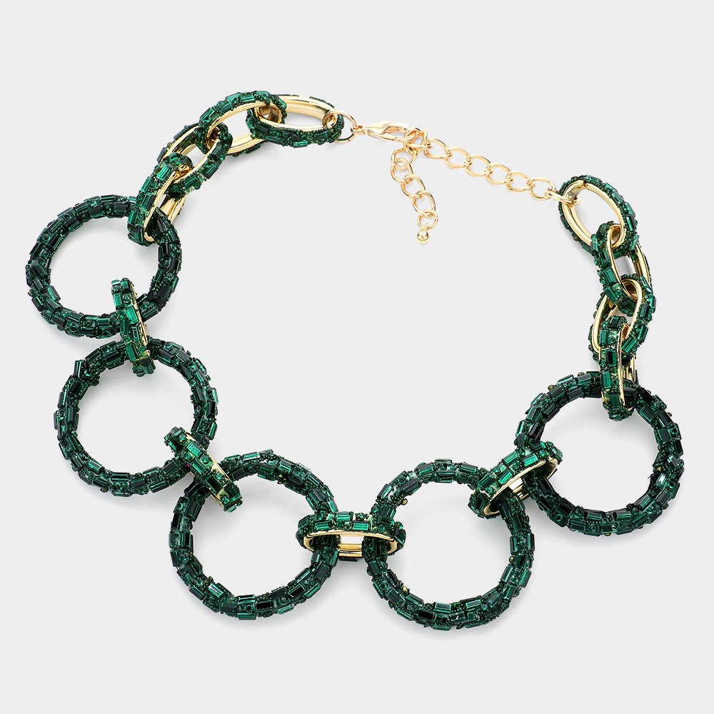 Baguette Stone Embellished Bling O Ring Link Necklace