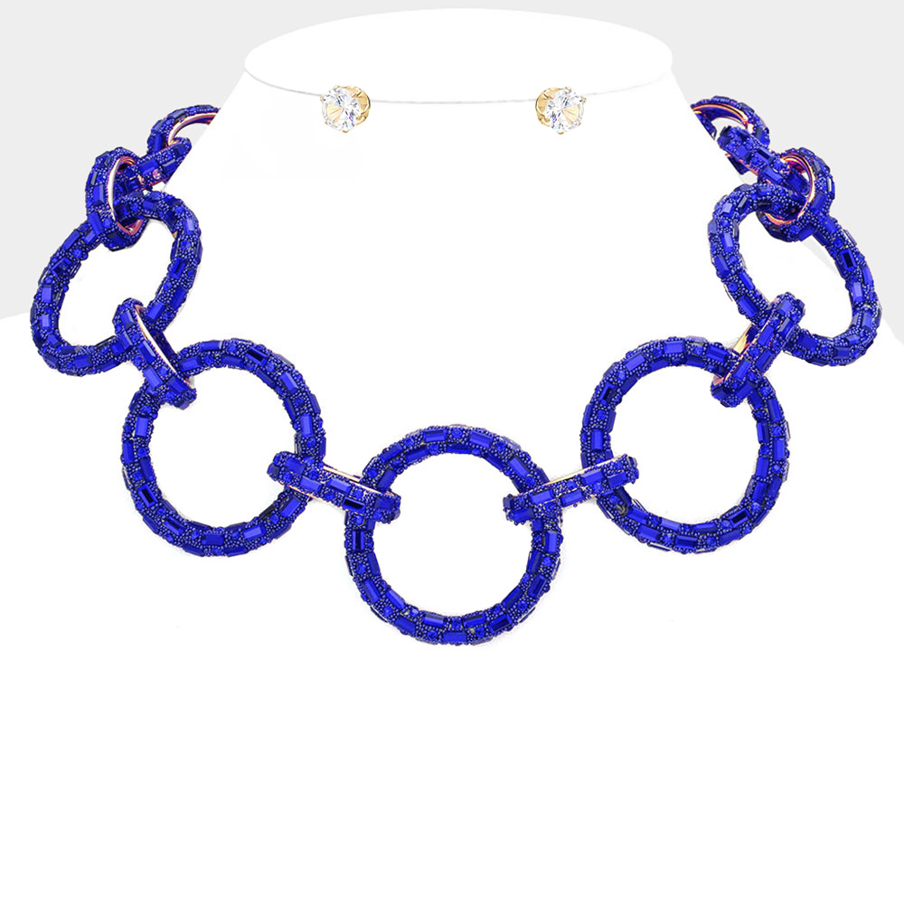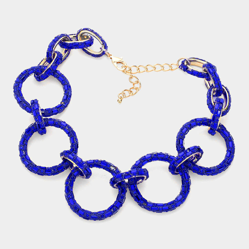 Baguette Stone Embellished Bling O Ring Link Necklace