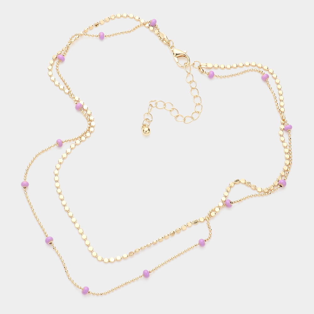 Victorian Style Rectangle Stone Cluster Link Station Necklace