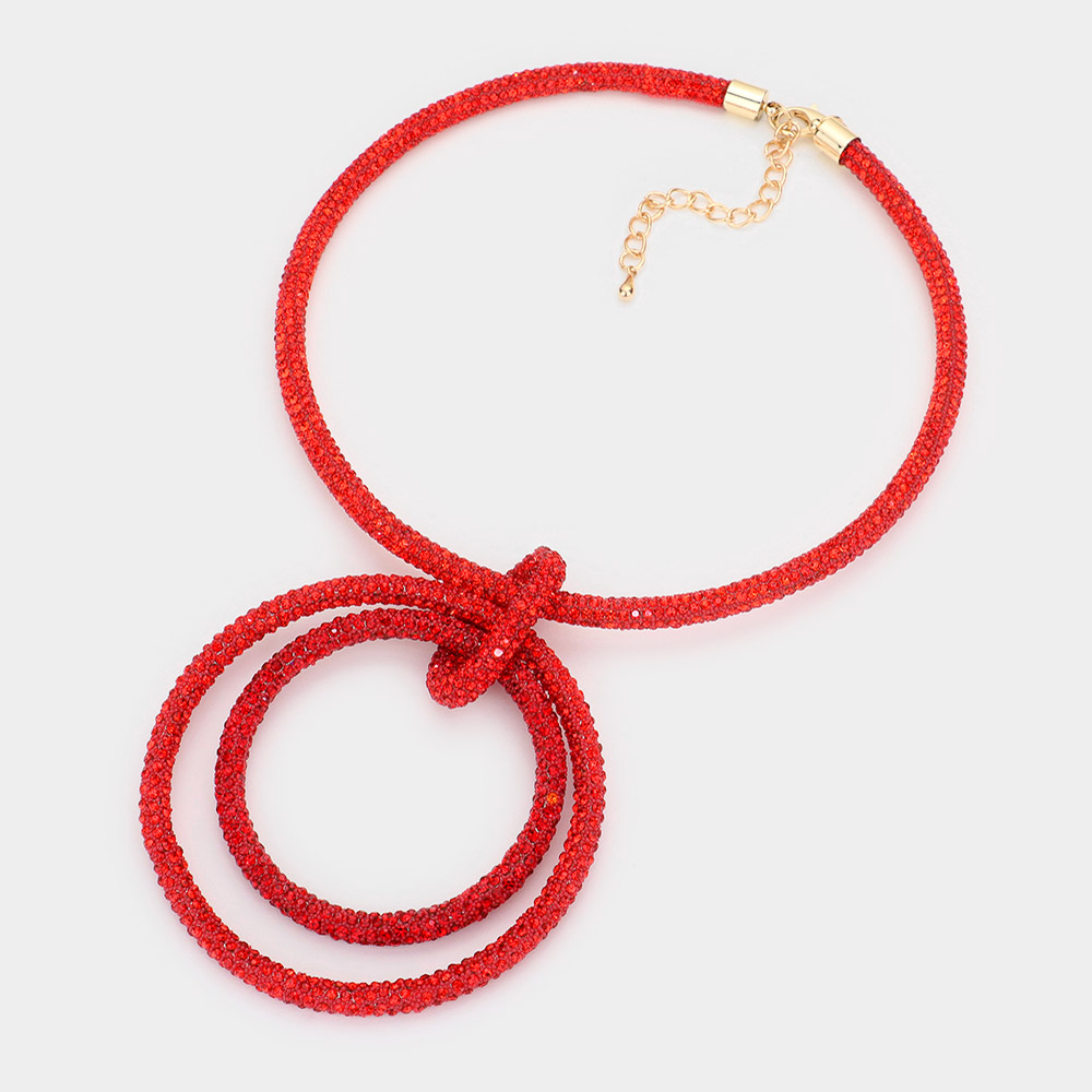 Stone Accent Boho Charm Station Fabric Scarf Adjustable Necklace