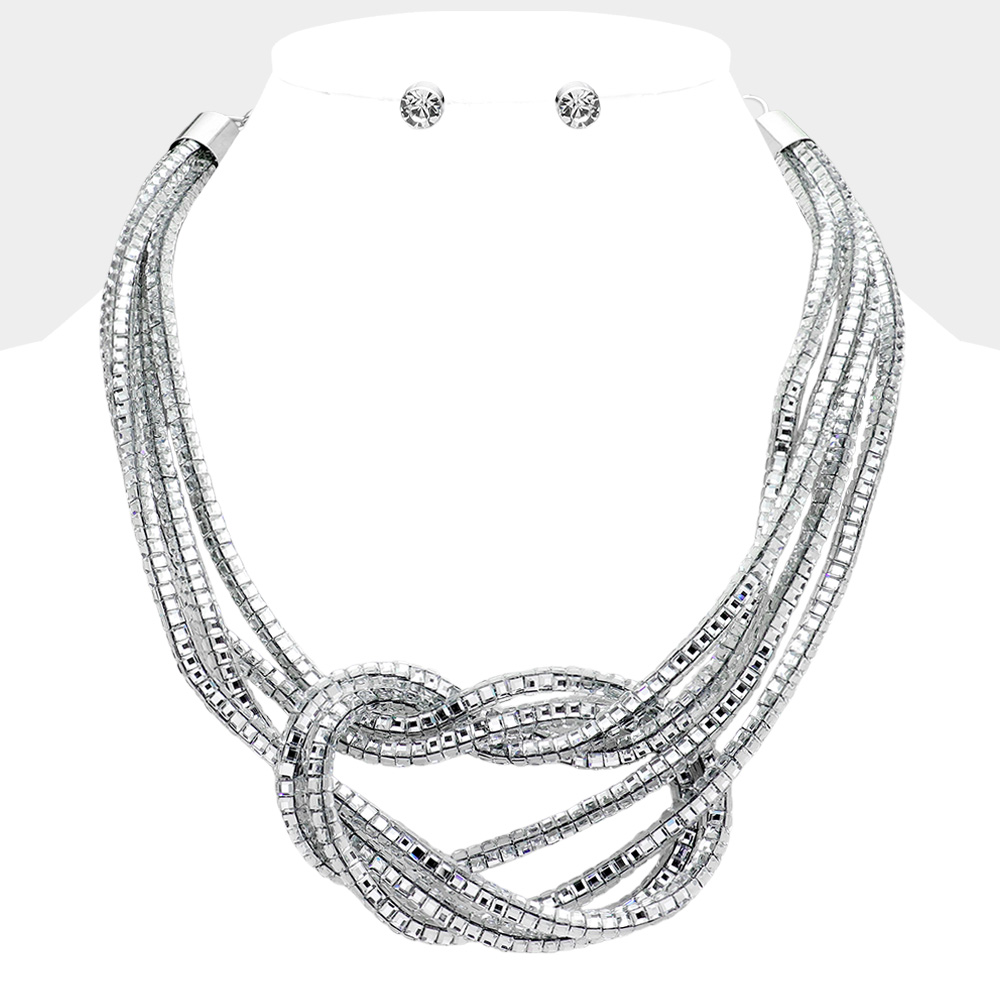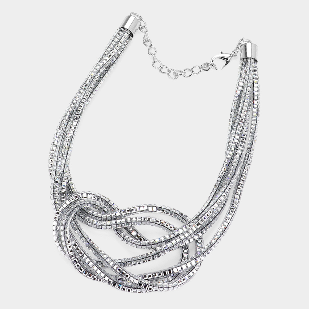 Gold Dipped Rhinestone Knot Pendant Necklace
