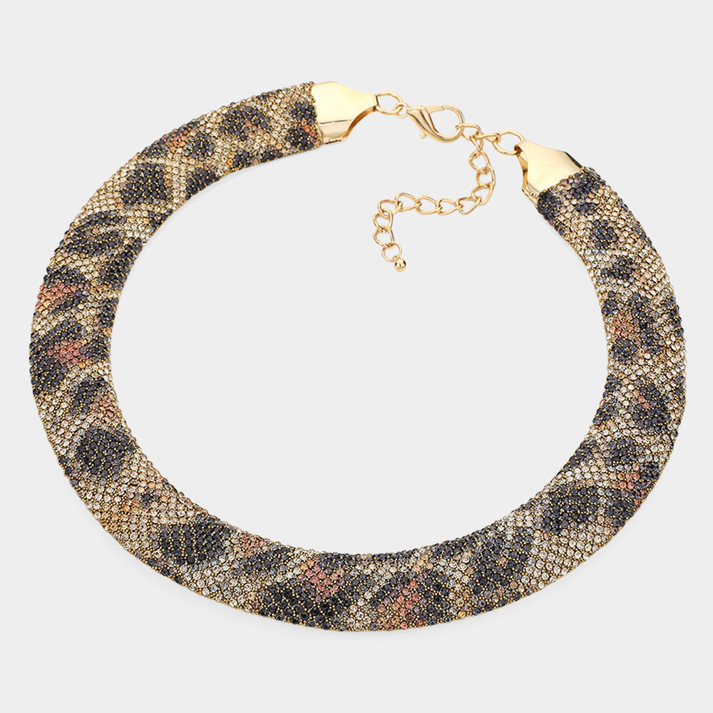 Bold Leopard Print Resin Plate Link Statement Necklace