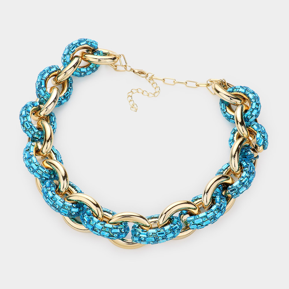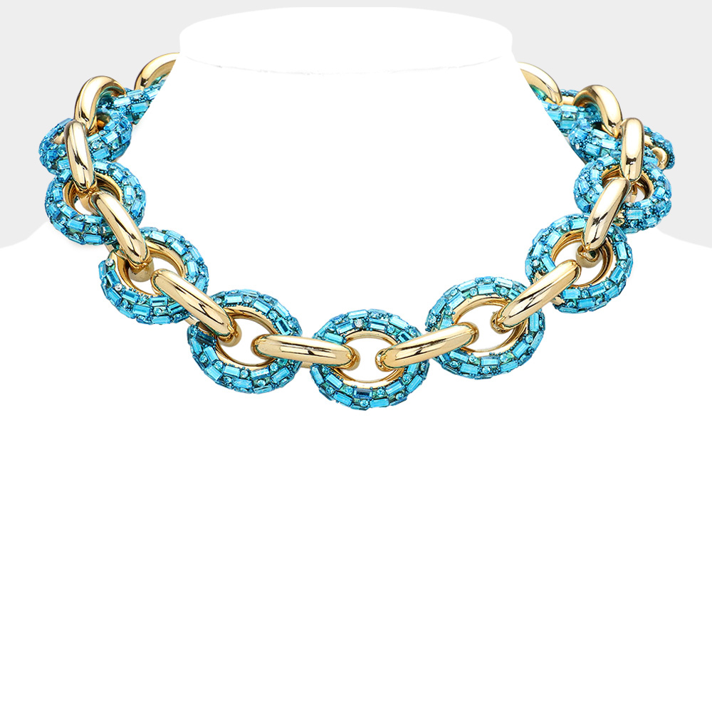 Wooden Spike Accented Metal Chain Layered Bib Necklace