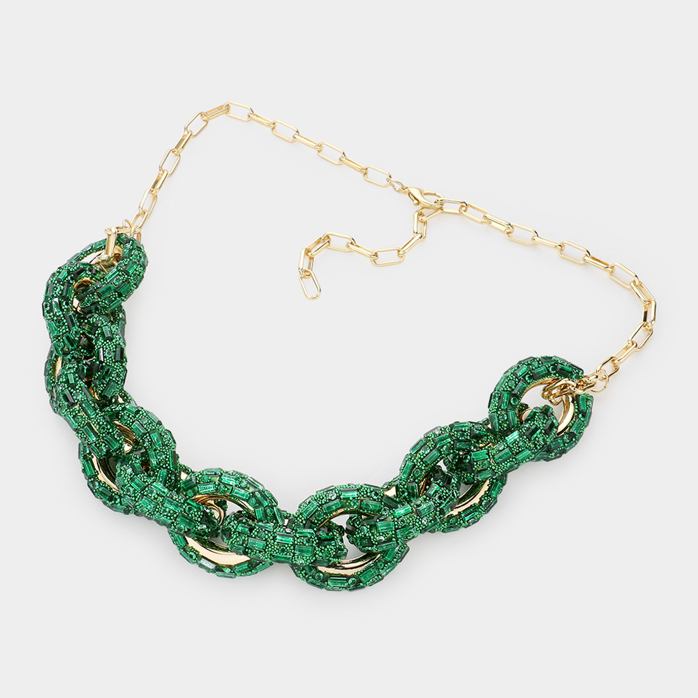 Stone Embellished Colored Metal Rectangle Link Necklace
