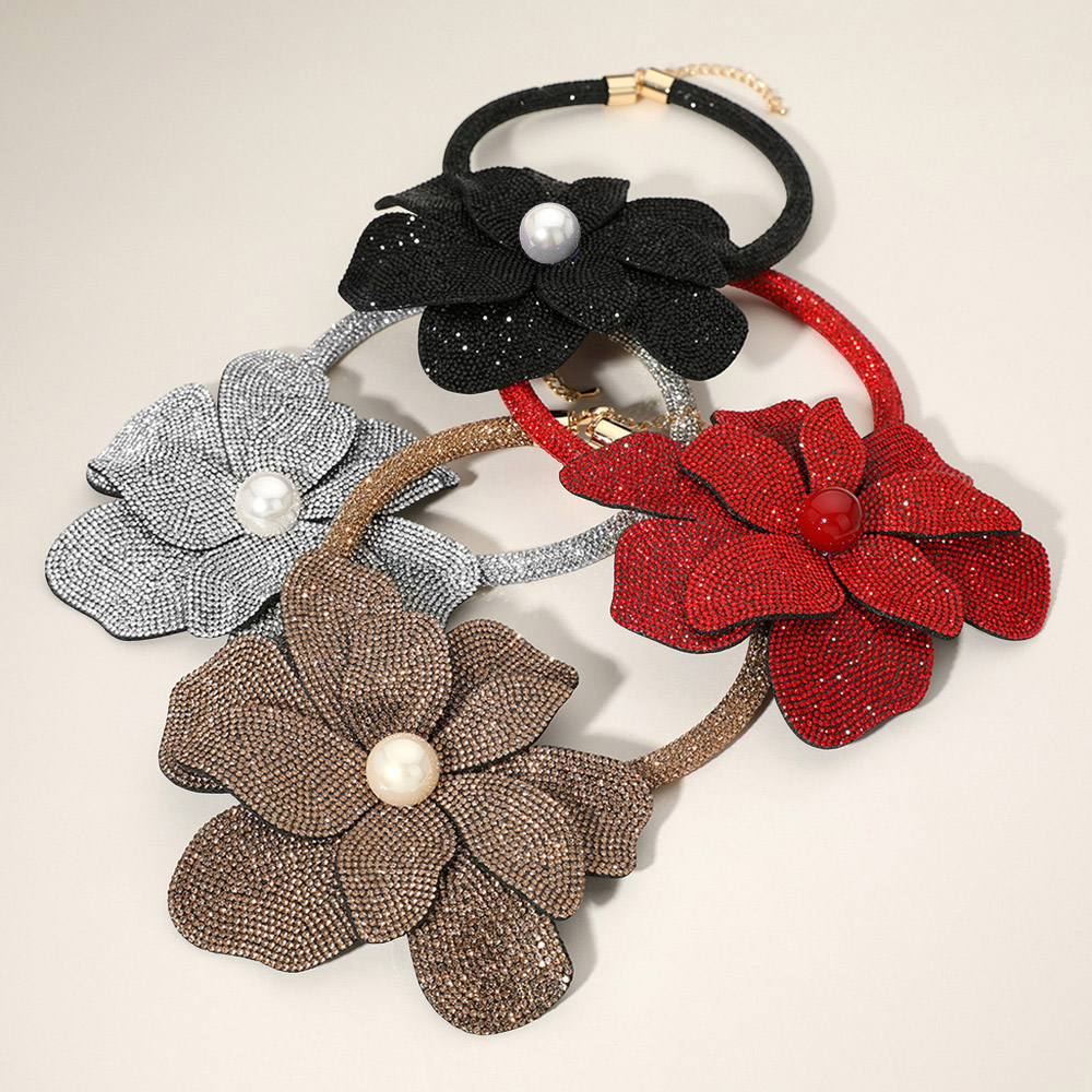 Details • Necklace Size : 17" + 3.25" L • Decor Size : 5" L • Turn heads with this bold statement necklace featuring a large beaded flower with textured petals and a pearl-like center. A striking accessory perfect for special occasions, themed outfits, or standout fashion moments. • Lead and Nickel Compliant