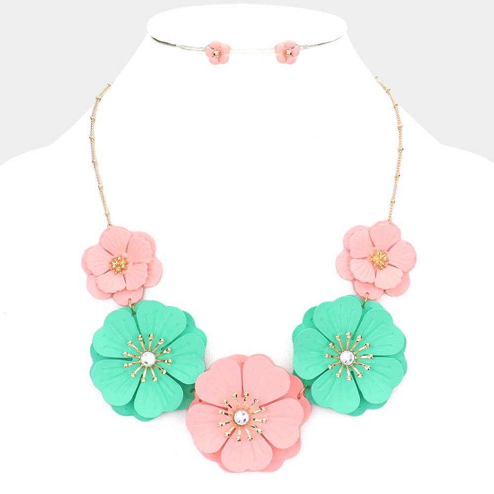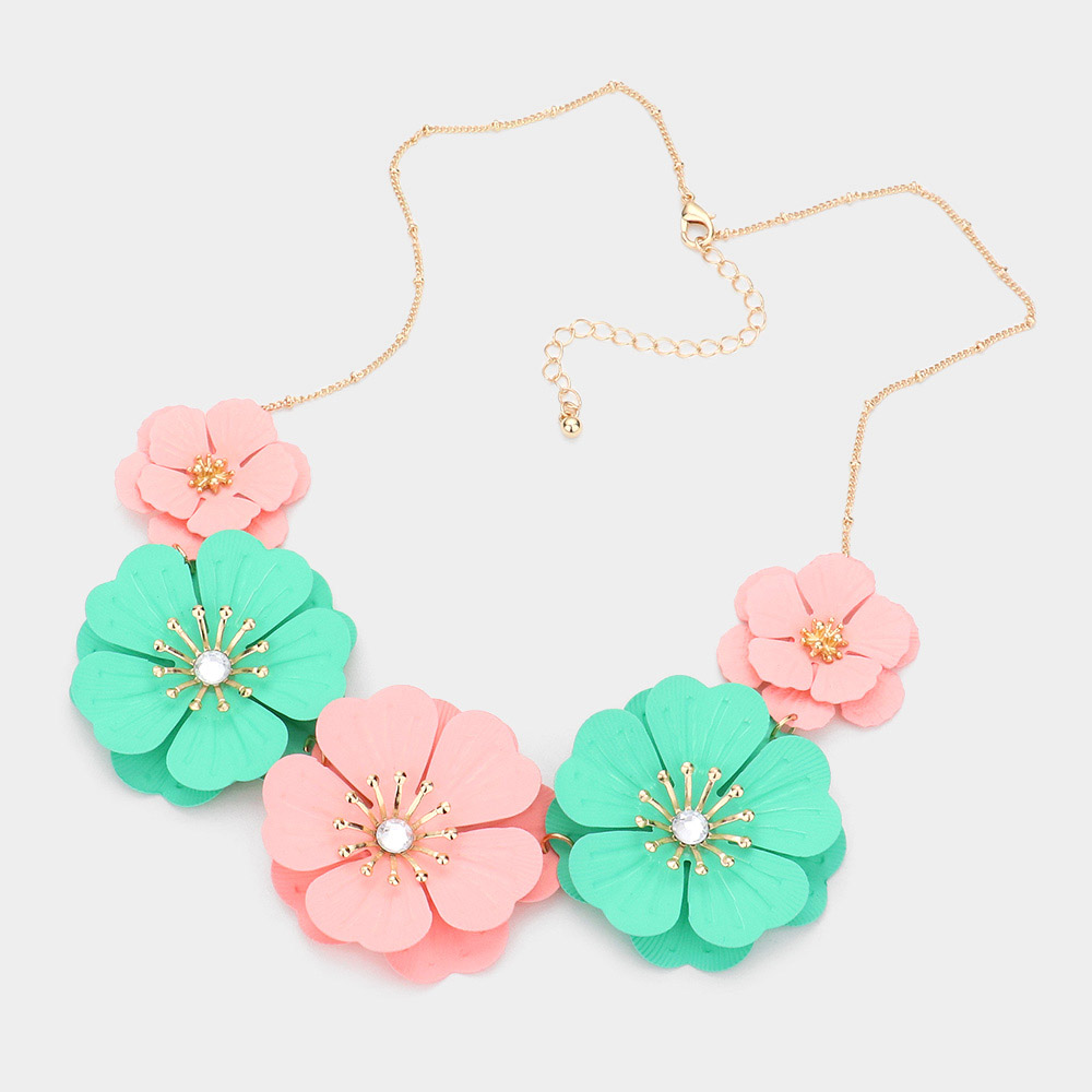 Celluloid Acetate Bold Geometric Flower Bud Beaded Statement Necklace
