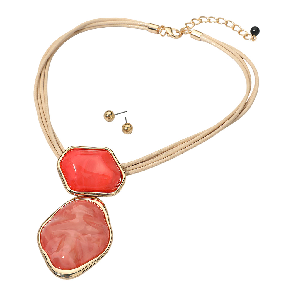 Bold Abstract Double Resin Link Pendant Statement Necklace