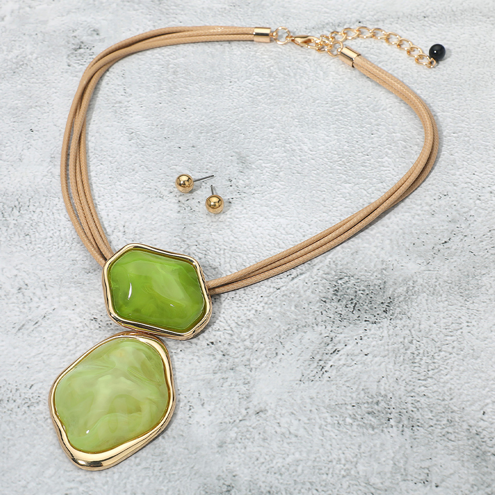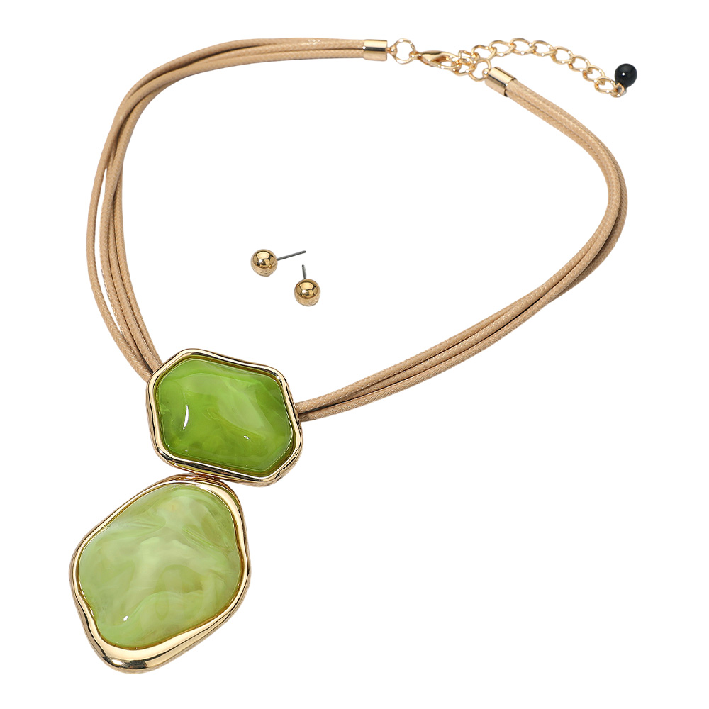 Bold Abstract Double Resin Link Pendant Statement Necklace