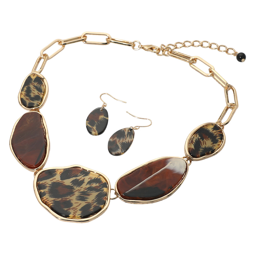 Leopard Celluloid Acetate Plate Link Statement Necklace