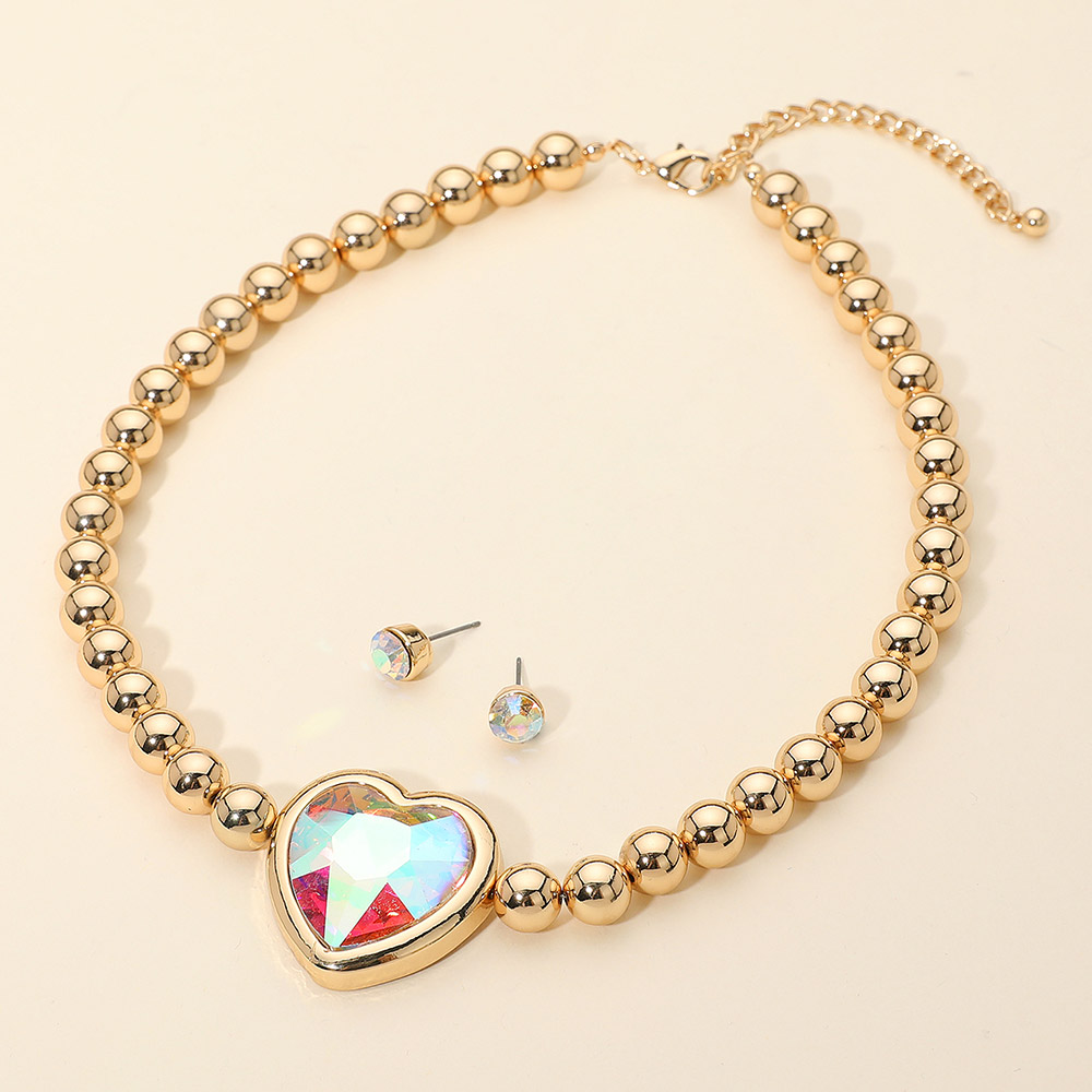 Details • Necklace Size : 17.5" + 3" L • Decor Size : 1.5" L • Earrings Size : 0.3" L • Brighten your look with this stunning beaded necklace and matching crystal stud earrings. A radiant heart pendant creates a bold, eye-catching centerpiece, while polished beads add a sleek, elegant finish. Perfect for parties, special occasions, or adding a playful sparkle to everyday style. • Lead and Nickel Compliant