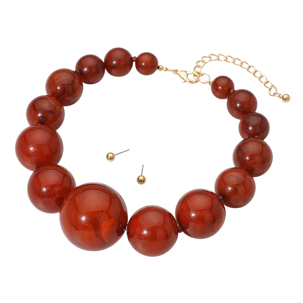 Details • Necklace Size : 17" + 4" L • Decor Size : 1.5" L • Earrings Size : 0.2" L • Enhance your outfit with this glossy round beaded necklace and matching stud earring set. The graduated bead design adds depth and balance, while the adjustable chain ensures a perfect fit. Ideal for creating a bold yet elegant statement that transitions effortlessly from day to night. • Lead and Nickel Compliant