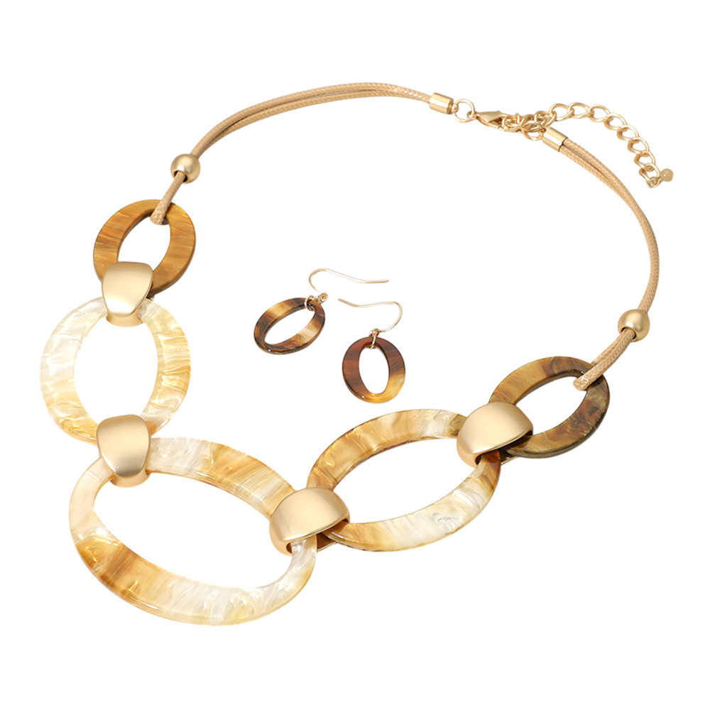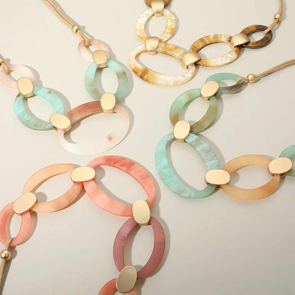 Bold Matte Finish Resin Oval Link Statement Necklace