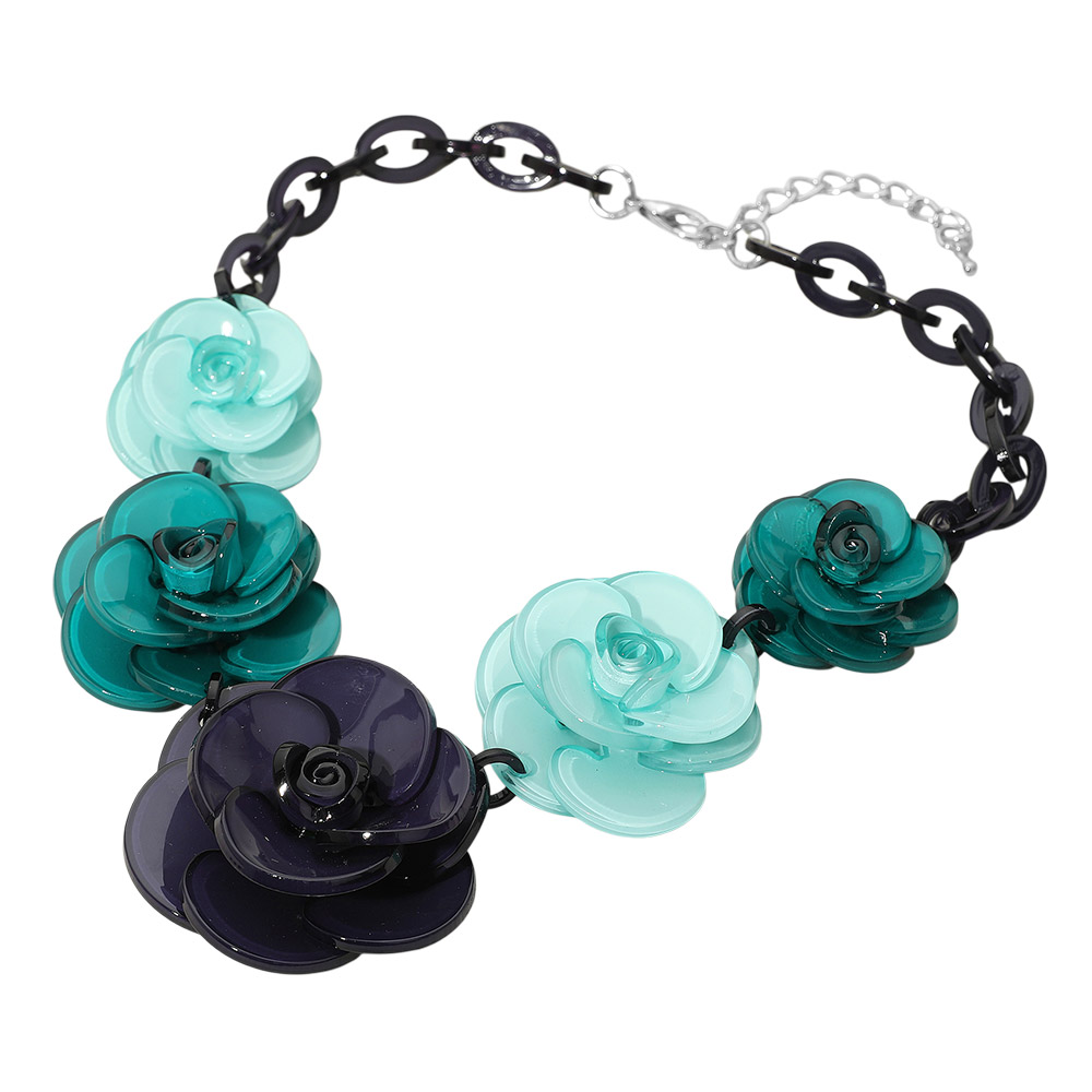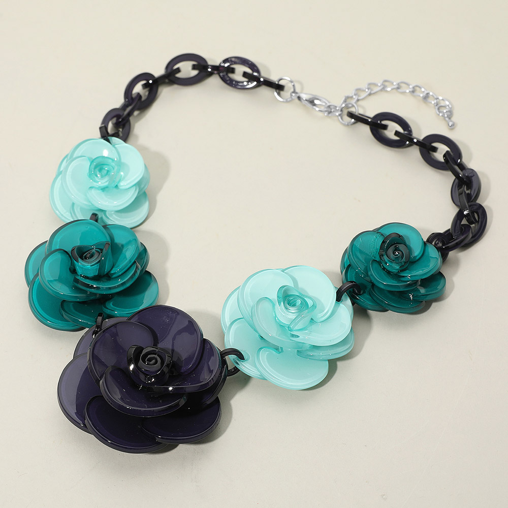 Details • Necklace Size : 18" + 3" L • Decor Size : 2.25" L • Make a dramatic entrance with this statement necklace featuring oversized layered rose accents and a chunky chain link. Perfect for special occasions or bold everyday style, it adds a striking floral touch to any outfit. • Lead and Nickel Compliant