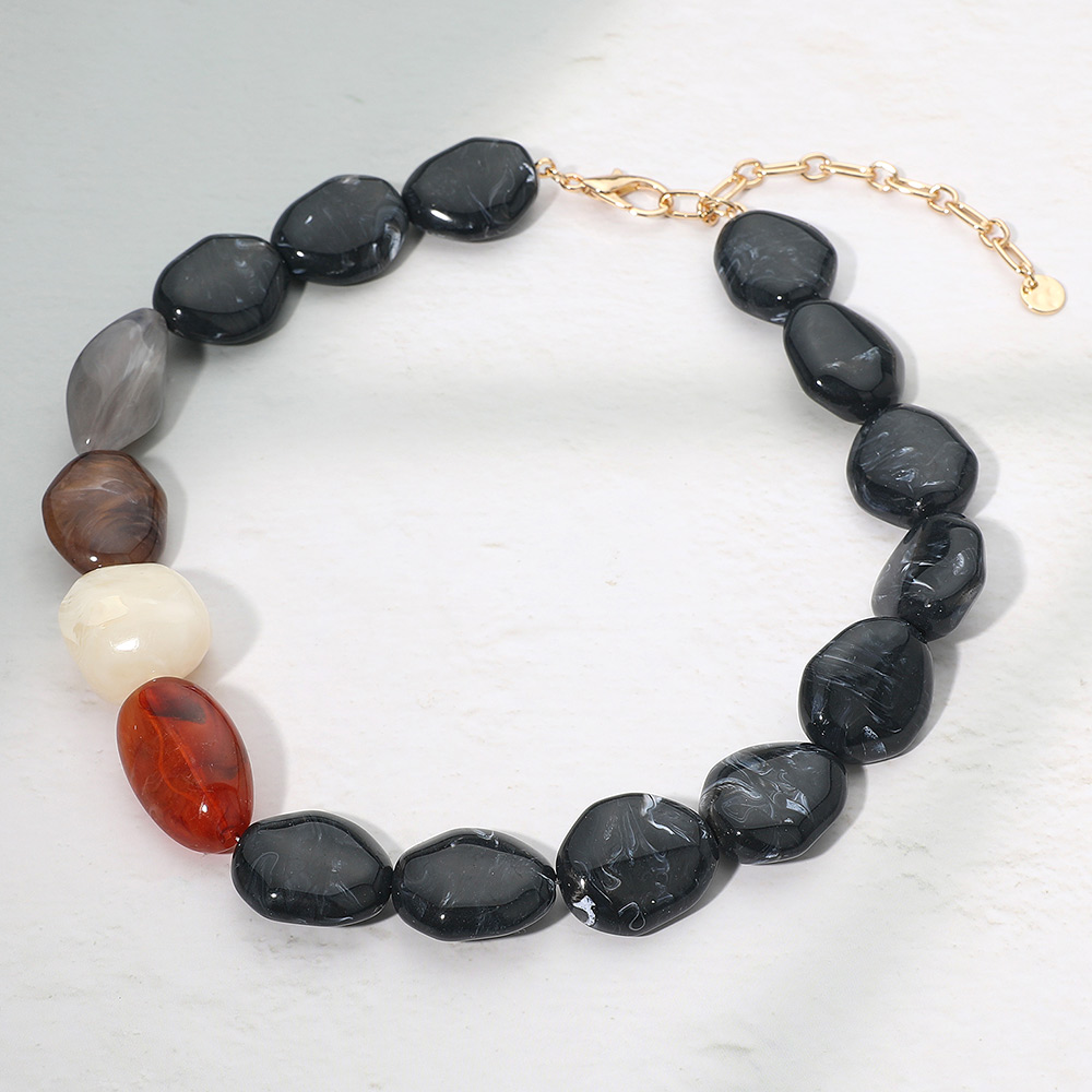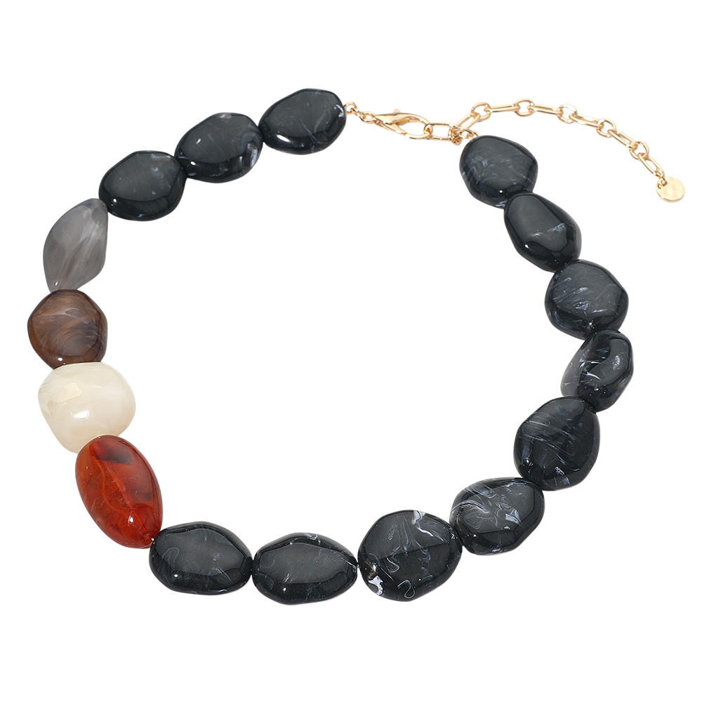 Details • Necklace Size : 17" + 3.5" L • Decor Size : 1" L • Bold nugget bead statement necklace featuring large irregular-shaped beads with a smooth polished finish. Designed with an adjustable extender for a comfortable fit, this eye-catching accessory adds natural elegance and texture to everyday looks or elevated outfits. Perfect for gifting or styling. • Lead and Nickel Compliant