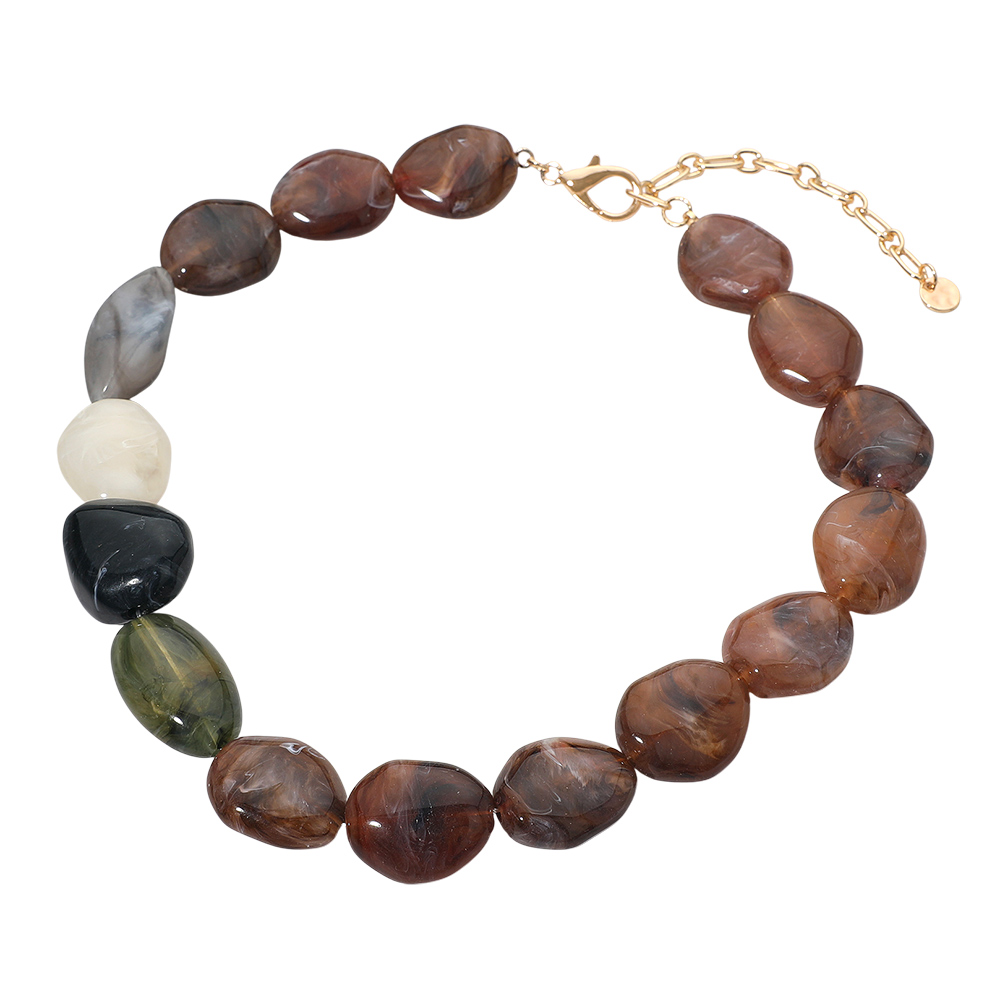 Details • Necklace Size : 17" + 3.5" L • Decor Size : 1" L • Bold nugget bead statement necklace featuring large irregular-shaped beads with a smooth polished finish. Designed with an adjustable extender for a comfortable fit, this eye-catching accessory adds natural elegance and texture to everyday looks or elevated outfits. Perfect for gifting or styling. • Lead and Nickel Compliant