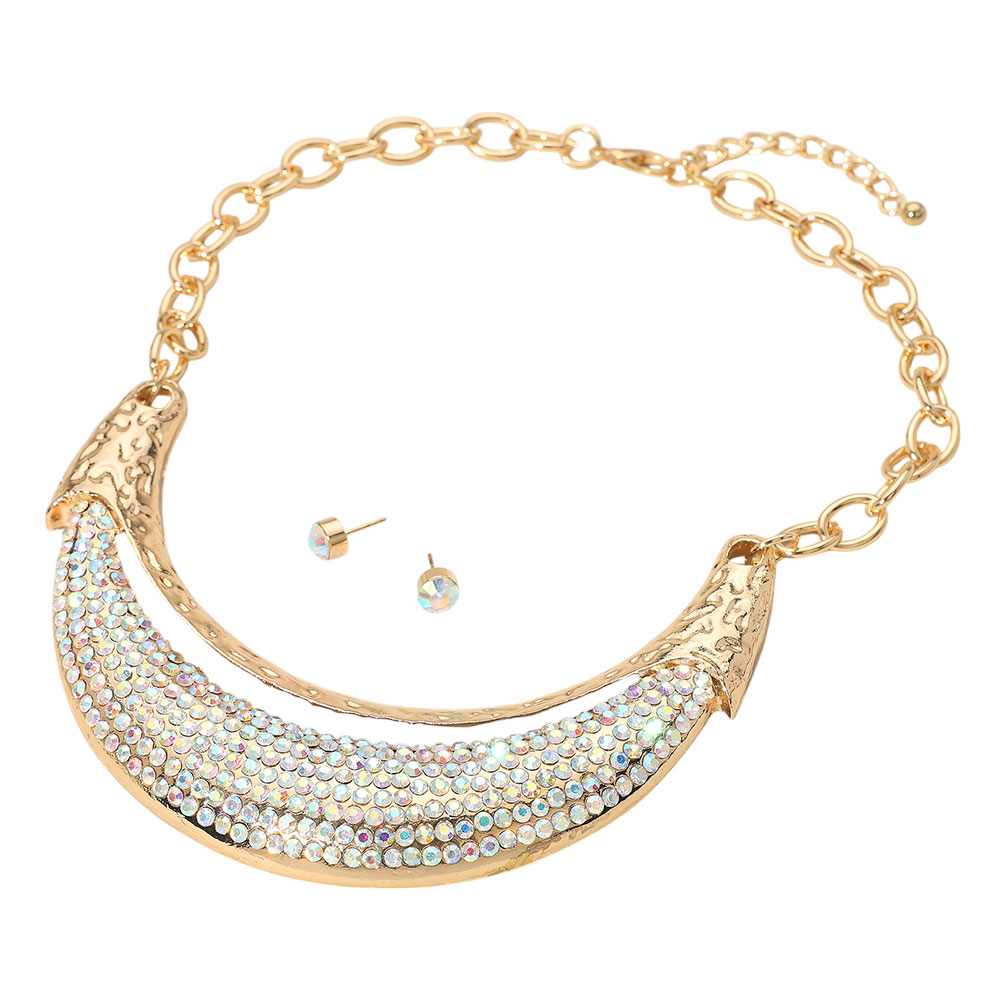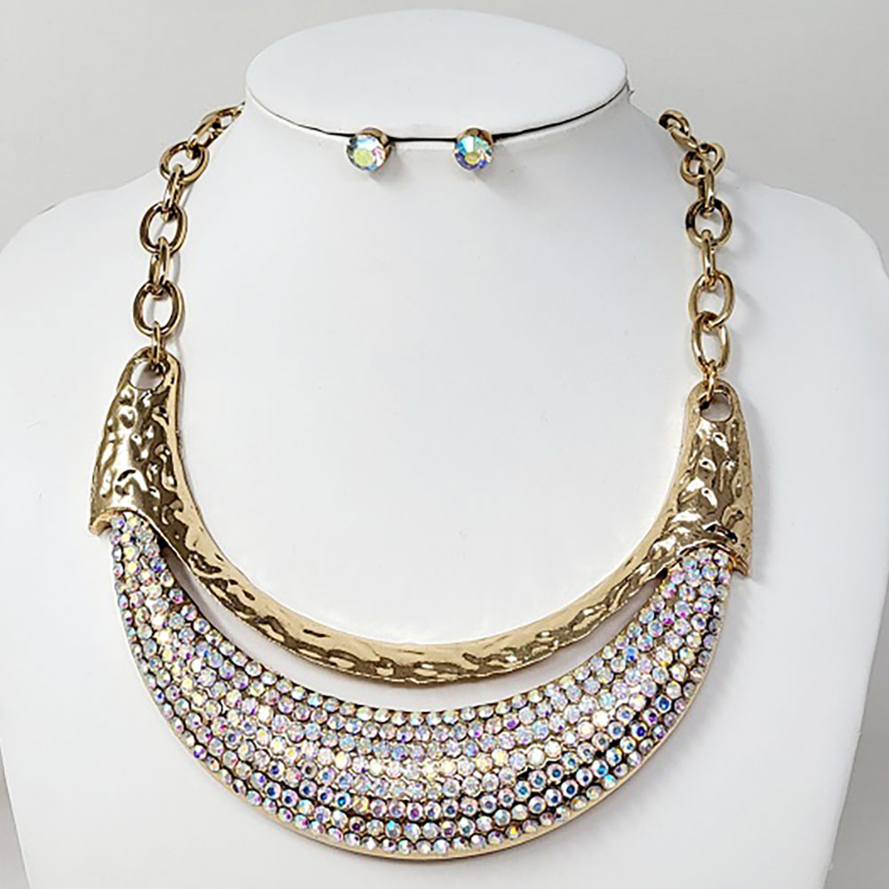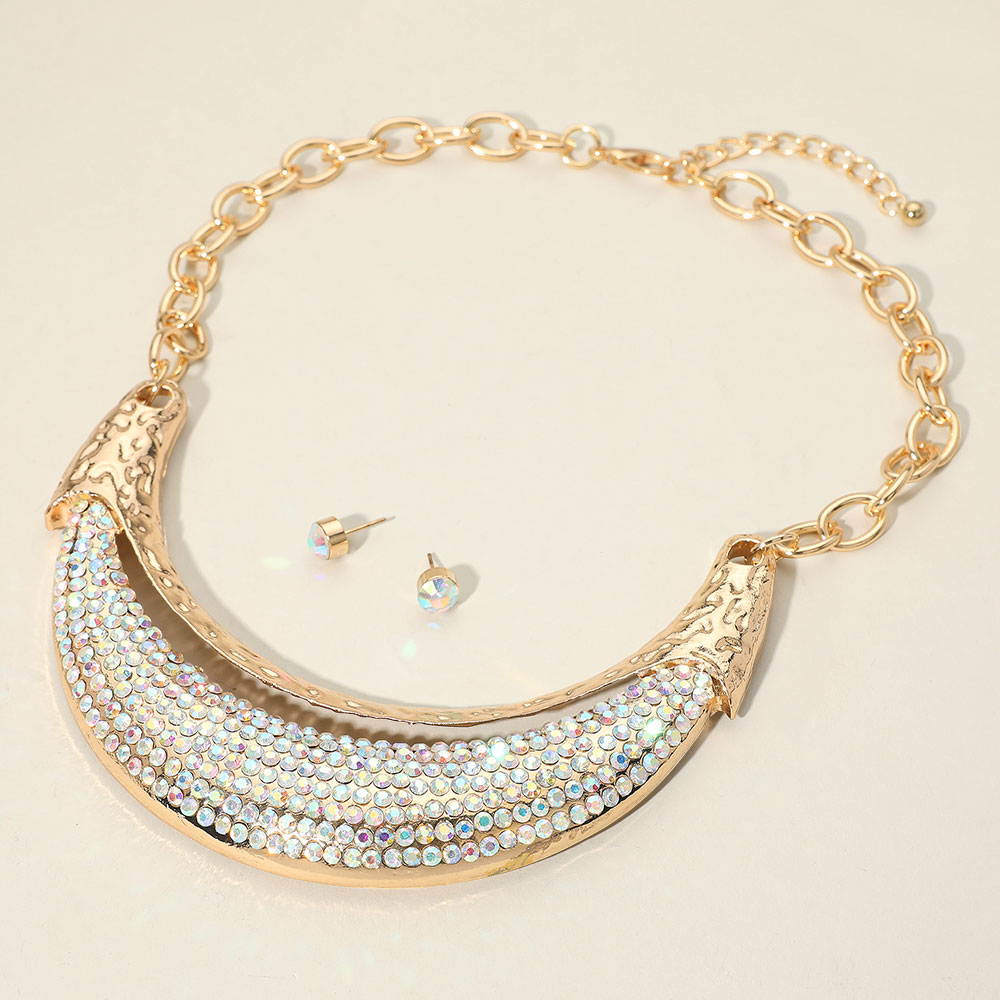 Details • Necklace Size : 23.5" + 3.5" L • Decor Size : 1.75" L • Earrings Size : 0.3" L • Elevate your style with this bold necklace set featuring a hammered chain and shimmering crystal detailing. Perfect for parties, weddings, and glamorous evenings. • Lead and Nickel Compliant