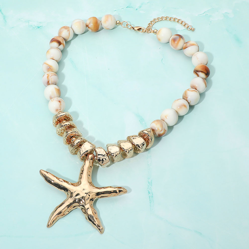 • Bold beaded necklace featuring a sculpted starfish pendant and textured spacer accents for a coastal-inspired statement look. Perfect for vacations, beach outings, summer events or adding playful ocean-themed charm to everyday outfits with eye-catching style.